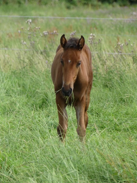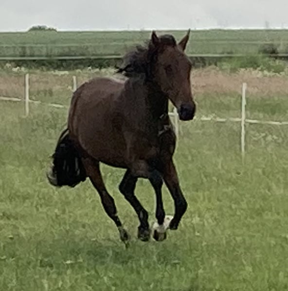 Afra ist eine sehr hübsche und gut bemuskelte und durchaus selbstbewusste junge braune Stute mit viel Go. Sie ist Menschen bezogen und altersgemäß erzogen (Halfterführig, Hufe ausschneiden, sich anbinden lassen, letzteres natürlich noch nicht Stundenlang). Ihre Gangveranlagung sind Marcha Batida und Marcha Picada und sie zeigt einen für ein Gangpferd sehr gut gesprungenen Galopp. Und man kann für sie sicher sagen, sie braucht liebevolle aber auch konsequente weitere Erziehung, damit sie eine tolle Partnerin für "dick und dünn" wird. Ich habe sie bisher nicht inseriert, da ich sie für weitere Zucht selbst behalten wollte, muss letztendlich aber einsehen, dass ich aus Alters- und vor allem Gesundheitlichen Gründen meinen Pferdebestand reduzieren muss. Das ist auch der Grund, warum es wenige Bilder von ihr aus 2024 und 2025 gibt.