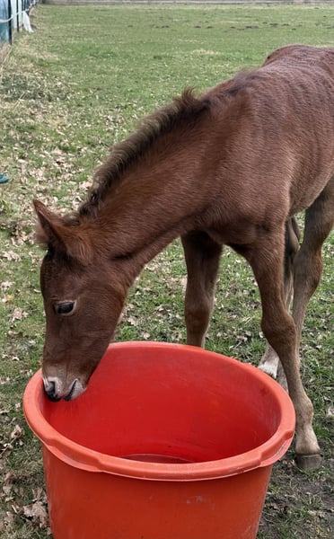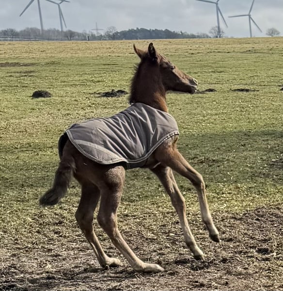 Finja vom Hartungshof geb.am: 09.03.2025 ist eine besonders feine, hübsche, lebensfrohe und neugierige kleine Dame. Sie ist das letzte Fohlen unserer tollen Fada, die leider im Herbst 2025 im Alter von 21 Jahren einen Unfall erlitt und deshalb eingeschläfert werden musste. Finja ist schon sehr selbständig, zeigt sehr gute Bewegungen, und wie alle ihre Geschwister, eine für einen Marchador erstklassige Galoppade. Ihre Gangveranlagung ist die Marcha Batida und vielleicht auch die Marcha Picada Das ganze gepaart mit einem sensiblen und feinem Wesen. Sie beherrscht das Fohlen ABC, ist geimpft gegen Influenza, Tetanus und Herpes, regelmäßig entwurmt und alle 7 Wochen erfolgte Hufkorrektur. Wenn sie Ihren Vollgeschwistern nacheifert, wird sie bei korrektem und gutem Fundament für einen Marchador recht groß und im Umgang sehr unkompliziert. Auch von ihr existieren auf Grund meiner eigenen gesundheitlichen Probleme relativ wenige Bilder.