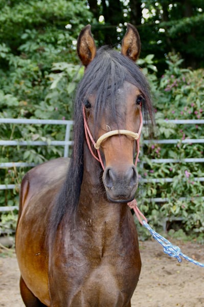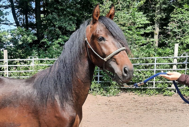 Paso Horse Stallion: Mangalarga Marchador x Paso Fino – Rare Combination for Breeding & Sport. Beautiful brown young stallion with a lot of mane and a baroque appearance, registered as a Paso Horse with papers. Combines the light-footedness, elegance, and eagerness to learn of the Paso Fino with the robustness, calmness, and harmonious conformation of the Mangalarga Marchador. Even now, he shows himself to be light-footed, well-balanced, and attentive – the best prerequisites for a comfortable, versatile riding horse. His harmonious build and friendly character also make him interesting for future breeding purposes. A rare eye-catcher with a future – for lovers of special Paso horses. For serious inquiries and further questions, we are happy to provide a personal exchange and arrange a viewing appointment.