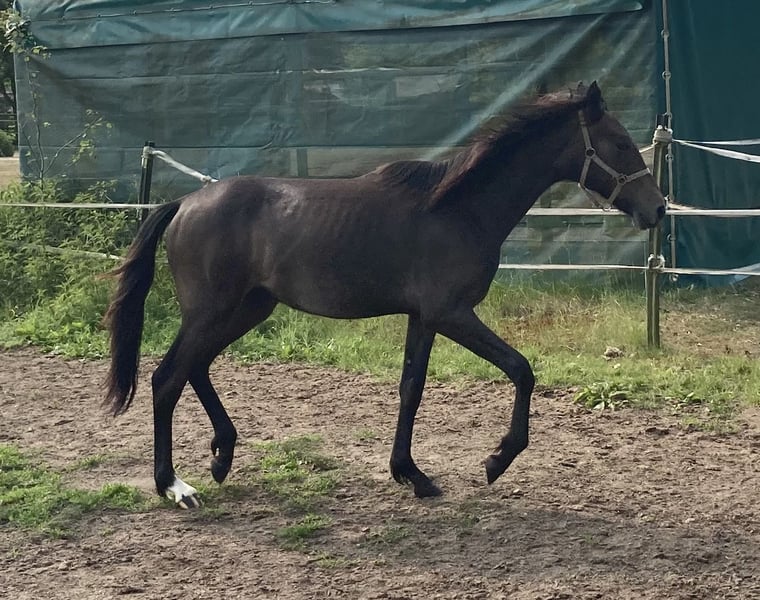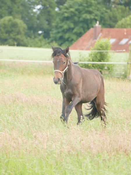Extra vom Hartungshof, geb.am: 14.05.2024 ist bekam seinen Namen, weil er als neugeborenes Fohlen bereits extra chic, extra frech und extra eigenwillig war. Inzwischen als Wallach ist er immer an extra Streicheleinheiten interessiert und zeigt sich extra motiviert damit man Zeit mit ihm verbringt. Ausgestattet mit einer Gangveranlagung zu Marcha Batida und Marcha Picada und einem ansonsten auch extra gutem Gangwerk wird er einmal ein Freizeitpartner der Extraklasse werden, da bin ich mir sicher. Wenn er farbmäßig nach seiner Oma und seiner Mutter kommt, wird er in einigen Jahren nicht normal "ausgeschimmelt" sein sondern Fliegenschimmel. Und Extra wird für einen Mangalarga Marchador sehr groß werden (ausgehend von Vater, Mutter und Vollgeschwistern). Er hat wie alle unsere Fohlen das Fohlen ABC gelernt und ist ist gegen Tetanus, Influenza und Herpes schutzgeimpft. z.Zt. lebt er in einer etwas 20-köpfigen Pferdegruppe im Alter zwischen 6 Monaten und 29 Jahren mit Offenstall, Weidezelten, Paddock und großer Weide. Hier wird fleißig mit dem "jungen Gemüse" gespielt und die "Erwachsenen" achten darauf, dass man nicht zu übermütig wird. Auch von Extra gibt es nicht nur sehr wenige Fotos und kein Video, weil meine Gesundheit es sowohl in 2024 wie auch in 2025 schwierig gemacht hat zu fotografieren und z.zt. ist er auch dem Alter entsprechend "nicht Fisch, nicht Fleisch".