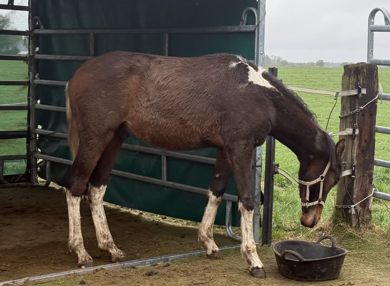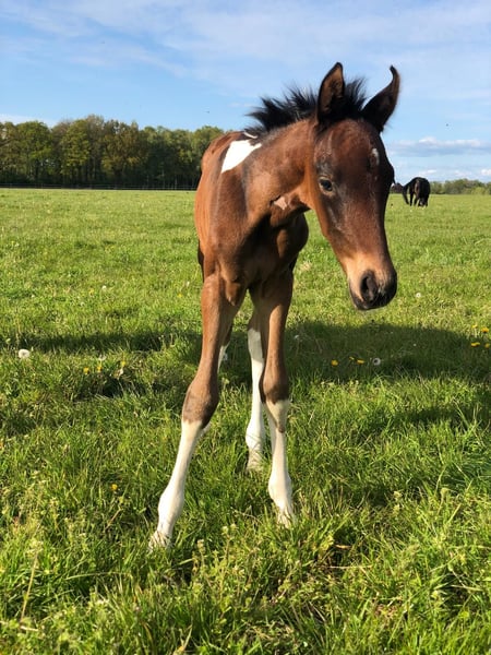 Espresso vom Hartungshof, geb.am: 20.04.2024 ist ein bildhübscher Braunscheckwallach mit wenig Weiß, er ist sehr verschmust und sehr neugierig, kann das Fohlen / Jungpferde ABC (haltftern, geführt werden, angebunden sein (natürlich im Moment nur kurzzeitig) er kennt Hufe geben und Hufbearbeitung). Er hat hervorragende Grundgangarten, ein sehr korrektes Fundament und seine Gangveranlagung sind die Marcha Batida und die Marcha Picada. Außerdem verfügt er über einen für ein Gangpferd sehr gut gesprungenen Galopp. Espresso lebt in einer Gruppe von 20 Pferden im Alter zwischen 29 Jahren und 6 Monaten. Hier leisten die älteren Semester wertvolle Erziehungsarbeit und die Jungen sorgen für die "Freizeitgestaltung". Sein Endmaß wird denke ich zwischen 150 - 155 cm Stockmaß sein.