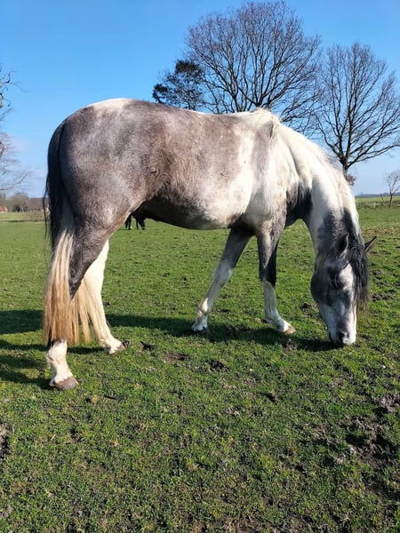 Mangalarga Marchador ruin to sale Unieke kans! Te koop staat mijn geliefde paard, Mangalarga Marchador ruin Jet van Hartungshof, geboren op 4 juli 2020. Porseleinkleurige appaloosa, stokmaat ongeveer 1,60 m, stevig gebouwd. Vanwege een verslechtering van mijn gezondheid en een tweede knieoperatie in mei heb ik, met pijn in mijn hart en na lang nadenken, besloten om Jet te verkopen. Daarnaast is de reden dat we na jaren proberen nog steeds geen goed team zijn geworden. Jet is een zeer gevoelig paard dat een rustige, zelfverzekerde en ervaren persoon nodig heeft. Ik merk dat zijn onzekerheid mij ook onzeker maakt, en dat we samen in een vicieuze cirkel terechtkomen die voor ons beiden niet optimaal is. Jet heeft tijd nodig gehad om zich te ontwikkelen, maar hij is nu op een punt gekomen waarop hij verder opgeleid en bereden kan worden. Hij kent al: - grondwerk - dualgassen - wandelingen - naast de fiets lopen - vrijheidsdressuur - longeerwerk - inparken - en nog veel meer We zijn begonnen met het wennen aan zadel – dat doet hij heel goed, en er heeft al iemand op gezeten. Jet is zeer leergierig en toont duidelijk dat hij klaar is voor de volgende stappen. Jet beschikt over zeer goede gangen. Naast de draf laat hij zowel Marcha Batida als Marcha Picada zien. Daarnaast heeft hij een krachtige en ruime galop. Omdat het voor mij belangrijk is dat een paard met een goed passende zadel wordt bereden, wordt zijn door Euro Horse aangepaste, hoogwaardige westernzadel meegeleverd. Het zadel is in oktober 2025 gekocht (aankoopbewijs aanwezig) en wordt inclusief hoogwaardig viltpad overgedragen. De prijs voor Jet is inclusief het hoogwaardige zadel en pad. Jet wordt uitsluitend afgestaan aan ervaren en goede handen. Persoonlijk contact waardeer ik zeer. Voor meer informatie graag telefonisch contact opnemen via 01723572224.