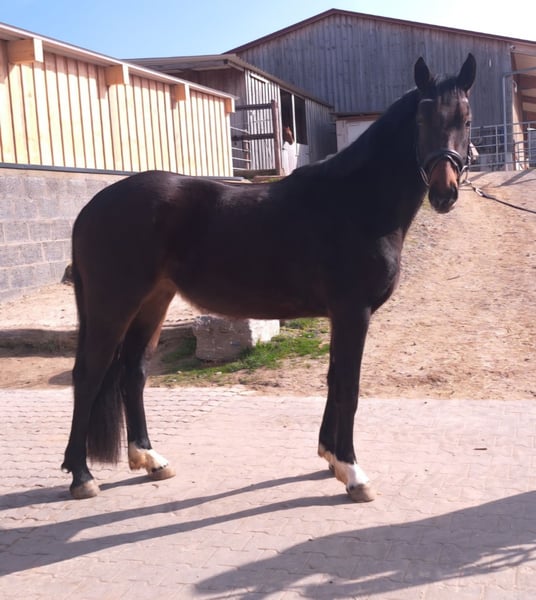 Te koop staat een charmante, kleine Duitse dressuurpaardmerrie, geboren in 2023. Met een stokmaat van ongeveer 155 cm combineert ze een compacte bouw met veel potentieel voor veelzijdig gebruik. Deze jonge merrie overtuigt door haar vriendelijke en open karakter. Ze is bekend met longeren, dubbele longe, grondwerk en is al gewend aan de uitrusting en het eerste gewicht op haar rug. Door haar veelzijdigheid is ze geschikt voor zowel de recreatieve ruiter als voor ambitieuze jonge ruiters die op zoek zijn naar een betrouwbare partner voor de sport. De jonge merrie is gezond, regelmatig ontwormd en zorgvuldig voorbereid op haar verdere opleiding. Ze beschikt over veelbelovende basiskwaliteiten. Bij interesse ben ik graag bereid om meer informatie te verstrekken. Deze kleine, veelzijdige dressuurpaardmerrie is een geweldige kans voor ruiters die op zoek zijn naar een betrouwbare en talentvolle jonge partner.