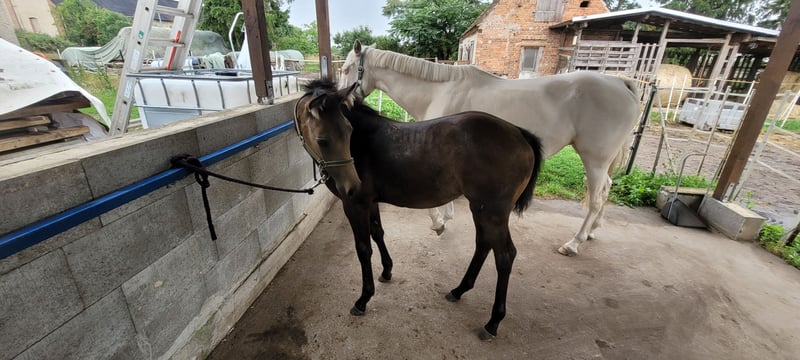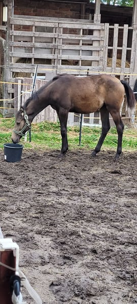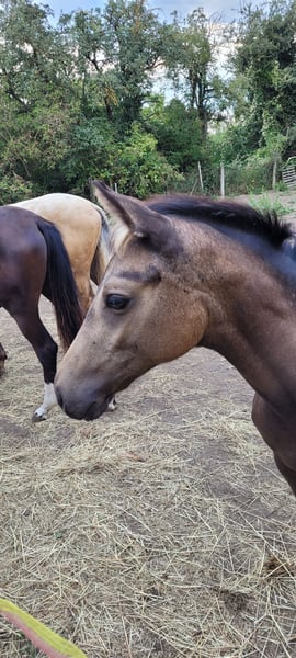 Mila wird jetzt schon 8 Monate und sucht ihren neuen Menschen. Diese hübsche Buckskin Stute besticht durch ihre harmonische Ausstrahlung, aufgeweckt neugieriges Wesen. Sie beherrscht das Fohlen ABC. Sie wurde zur Fohlenschau vorgestellt und bekam die Fohlenprämie. Sie bekommt Papiere f. Kleines deutsches Reitpferd. Endmaß ca 1,60m Momentan ca 1,36m groß Aufgrund ihrer Eltern wird Mila mal eine sehr vielfältige junge Dame werden, die in Dressur, Springen und Gelände eingesetzt werden kann. Beide Elternteile problemlos beim Anreiten, rittig, vordere Platzierungen bei Freispringwettbewerben. Mila wird regelmäßig dem Hufschmied vorgestellt(letzte Vorstellungam 10.10.), entwurmt und hat schon ihre 2. Tetanus Spritze erhalten. Besichtigung nach Absprache jederzeit möglich. Standort: 39164 Wanzleben-Börde Bringen des Fohlens gegen Aufpreis wäre kein Problem. Ratenzahlung auch denkbar. Das Fohlen bleibt dann aber bis zur vollständigen Bezahlung bei uns aufm Hof.