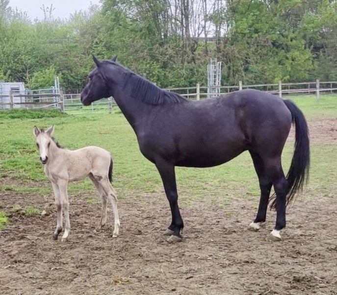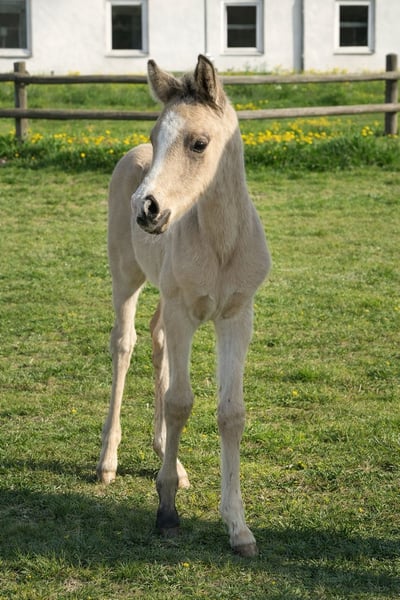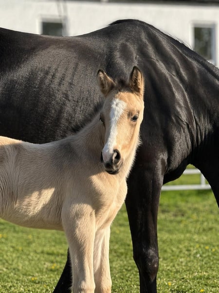 Typstarkes charmantes Hengstfohlen in aussergewöhnlicher Farbe zu verkaufen. Echter Eyecatcher im Großpferdemaß. Bewegungsstark und cool! Diziano ist außergewöhnlich menschenbezogen, kuschelt gerne und lernt gerade das Fohlen ABC. Er wächst artgerecht in einer Herde mit gleichaltrigen Fohlen auf und kennt Kinder, Hunde, Traktoren etc. Seine Mutter ist eine wunderschöne Warmblutstute, die sich hervorragend vererbt. Ihre Nachkommen sind außergewöhnlich brav und leichtrittig. Sein Vater Denim AT -ist Liebling der Hengstschauen und 2024 Bundeschampionatsfinalist sowie 2025 rheinischer Landeschampion und Bundeschampionatsfinalist und Vater des Siegerfohlens der Fohlenschau Wettringen. Dieser Hengst ist ebenfalls enorm rittig und unglaublich unerschrocken. Wir sind Züchter aus Leidenschaft und lieben unsere Pferde. Unsere Zuchtstuten und Fohlen erhalten Zucht-, bzw. Fohlenfutter und Mineralfutter, werden regelmäßig entwurmt, dem Hufschmied vorgestellt, geputzt und gepflegt ‼️ Wir als Liebhaber der Pferdezucht, haben uns entschieden Kl. dt. Reitpferde zu züchten, da diese Mischung Warmblut / Reitpony sehr harte, gesunde und vorallem nervenstarke XXLPonys hervorbringt! Wir halten gerne zu allen Käufern ehemaliger Fohlen freundschaftlichen Kontakt. Scheuen Sie sich nicht uns zu kontaktieren ❣️