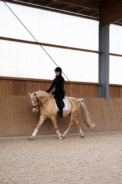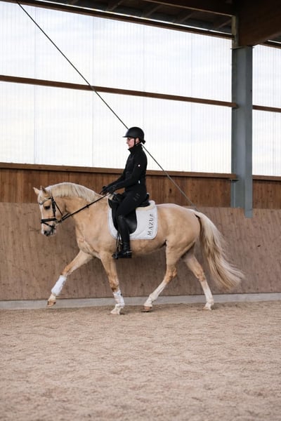 Selbstgezogener Barbietraum sucht Bestplatz ♥️ Elitehengst Cadlanvalley Sir Ivanhoe x Fürst Frederick x Roboter Schicker 4j Wallach mit einem derzeitigen Stockmaß von 1,47. Seine Mutter und Geschwister sind alle spät gewachsen. Es wird ein Endmaß von mindestens 1,55m erwartet. Cotton Eye Joe wurde von uns gezüchtet, ist bei uns aufgewachsen und wird nun von uns schonend angeritten. Er ist vollkommen unverbraucht und hat in seinem Leben keine schlechten Erfahrungen gemacht. Im Umgang und in der Arbeit zeigt er sich super menschenbezogen, brav und lernwillig - so macht die Arbeit mit ihm einfach Spaß. Er verfügt über drei überdurchschnittliche Grundgangarten mit einem guten GO und macht auch einen sehr guten Freisprung und erste kleine Gymnastiksprünge unter dem Reiter. Da wir uns die Möglichkeit zur Körung offenhalten wollten, wurde er erst 3jährig kastriert, zeigt aber keinerlei Hengstmanieren. Ein vielversprechendes Kleinpferd zum weiter ausbilden. Er bringt alles mit um ein toller sportlicher Begleiter zu werden, aufgrund seines grundehrlichen Charakters können wir ihn uns zukünftig aber auch absolut als Kinderpony vorstellen. Ein Pferd für die ganze Familie. Mehr Informationen gerne auch via WhatsApp oder telefonisch unter +49 173 7359633
