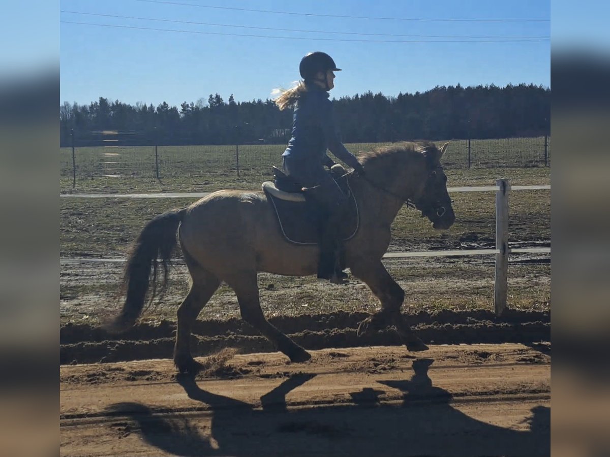 Konik Gelding – Perfect for trail riding! 4 years old, approximately 14.1 hh (still growing) Well-broken and confident in the terrain. Familiar with lunging, riding arena, and rides out alone. Training level appropriate for age. Fullbred with pure lineage, Free of vices. Excellent health. Suitable for open stable housing. Videos available. Transport possible.