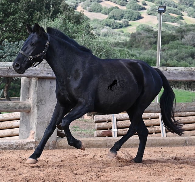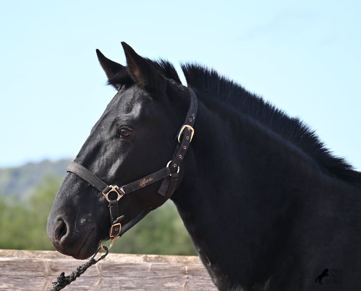 This 2016-born purebred Menorquín mare carries a purebred Menorquín foal in her belly. :) She is a breeding mare and has not been ridden. She was covered in March 2025, so travel for her and the foal is not an issue, and there is ample time for her to acclimate to her new environment before the foaling date. Apart from a white marking on one hind leg, she is completely black. You can see in her movement that she is carrying some extra weight, but otherwise she moves very correctly. She is kept in a 24/7 paddock system on many hectares of land, making her very resilient. Her qualities as a mother have already been proven, and she comes from very primitive lines of the Menorquín, known for endurance and versatility. Videos and pedigree available upon request. Her height at the withers is 156 cm, and she is barefoot. Location: Menorca. I am happy to arrange a pre-purchase veterinary examination, transportation, or her journey if you wish to view her in person. Details can be discussed on my website or in a conversation. Greetings from Spain