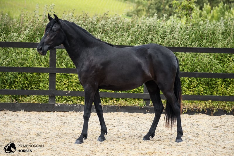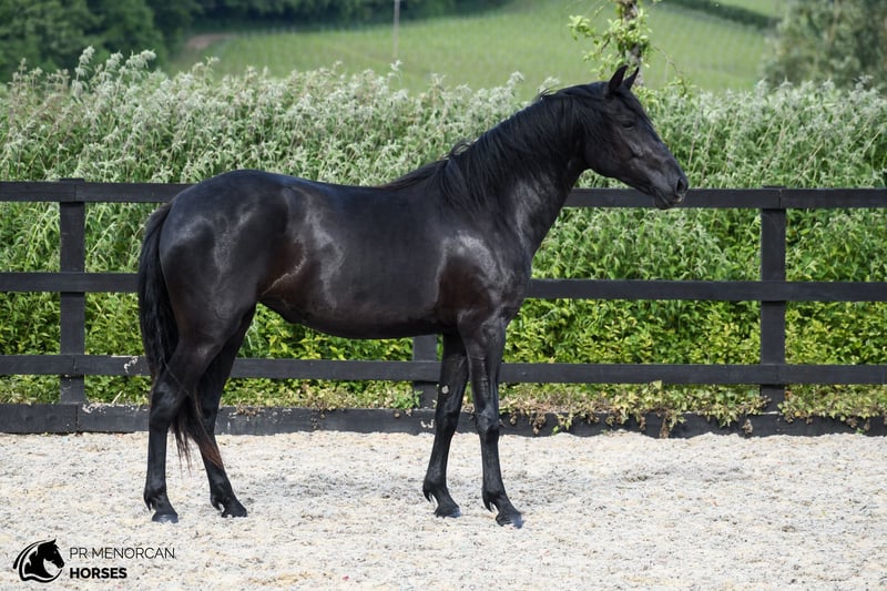 Oportunidad única de adquirir una yegua Pura Raza Menorquina (PRMe) joven con un linaje excepcional. Nacida en 2023, esta potra mide 155 cm y todavía está creciendo. Su capa completamente negra resalta su elegancia y pureza racial, además es PIRO NEGATIVA por lo que puede exportarse a cualquier lugar. Su valor genético es difícil de igualar. Es hija de uno de los tres únicos sementales PRMe calificados como ELITE, y en la línea materna encontramos a otro de los tres sementales de ELITE. Esta combinación hace de ella una candidata extraordinaria para la reproducción, además de tener un gran potencial para doma clásica o equitación de trabajo. Es una potranca con fuerza y carácter, llena de vitalidad. Aunque al principio puede mostrarse reservada, una vez te conoce, confía plenamente en ti y se muestra dispuesta a enfrentarse a cualquier novedad contigo a su lado. Se deja coger bien, camina con soltura a la cuerda y sube sin problemas al remolque. Se ata con tranquilidad y, aunque aún necesita algo de confianza con el herrador, siempre coopera. Puede vivir en libertad o en box por la noche. Es muy sociable y convive bien con otros caballos, ya sean yeguas o castrados, aunque ocupa un lugar más bajo dentro del grupo. 📍 Ubicada en Reino Unido Nos encargamos de todo: examen veterinario, documentación y transporte internacional. 📩 Contáctanos para más información, fotos y vídeos! Saludos!
