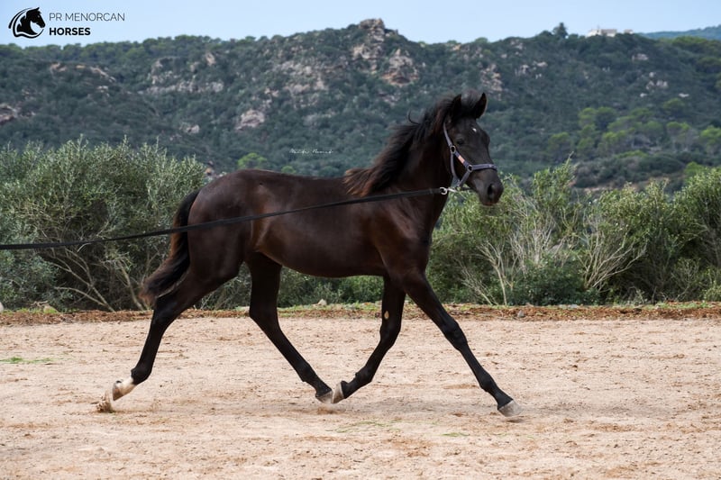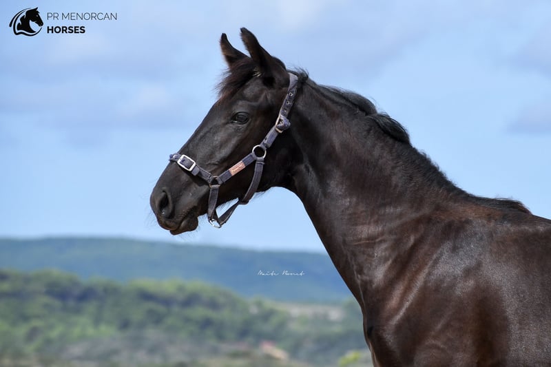 This super cute Pura Raza Menorquina filly, born in March 2023, is looking for a new home. She has a sporty physique like her father, an ELITE stallion with many awards for her good movements. Her mother is a very good mother, black and descended from older, more baroque lines. The filly has a white sock on her right foot and a small star on her forehead. Despite this, we think that she can be assessed as a breeding mare in the future, which would be very interesting due to her bloodlines. Both her father and mother are big, so we estimate that at least she should reach a height of 160cm or more. She is the sweetest thing, she lives free in the field with other fillies and mares, where she learns manners and at the same time grows strong and healthy. She approaches people even if she doesn't know them, she is curious and friendly. Despite her young age, she already allows herself to be guided with a halter and can even be longed! which demonstrates her predisposition to work and her intelligence. She could be left in Menorca and start her training here, or simply go to her new home, as everything is ready for her to travel. Regularly dewormed. You can come visit it yourself, or we can do the entire process online. I can also organize veterinary exams, paperwork and transportation worldwide. Located in Menorca For more info and videos send us a message ;) Cheers!