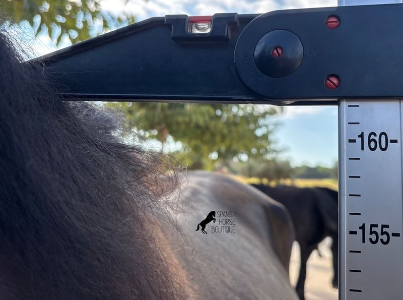 Diese 2023 geborene, reinrassige Menorquinstute, will definitiv hoch hinaus! Denn aktuell misst sie schon 162cm und wird noch einiges wachsen. Sie entstammt sehr alten Linien des Menorquin, obwohl ihr Papa mit über 170cm, schon zum modernen Typ gehört. Ihre langen Beine, wissen sich auch zu bewegen, denn sie trabt sehr im Gleichgewicht und hat eine gute Aufrichtung im Galopp. Somit wird sie später für viele Sparten als Reitpferd interessant, besonders, wenn man größere Pferde mag ;) Der Stern auf der Stirn, lässt sie aus der Masse herausstechen und leuchtet genauso klar, wie ihr Auge. Die junge Dame ist sehr artig und kennt schon longieren am Halfter, abgesehen vom täglichen Umgang, ansonsten ist sie altersbedingt natürlich roh. Sie lebt im Herdenverband und dank des rauen Klimas und der felsigen Böden, hat sie harte Hufe und klare Beine. Die Schnute hat sie sich selbst mit Sand "verschönert" darunter ist sie aber auch ganz schwarz ;) Ihr Endmaß wird bestimmt über 165cm liegen. Videos und Abstammung gerne auf Anfrage. Ihr Standort ist Menorca. Gerne organisiere ich vor Ort eine Fohlen-AKU,Transport oder auch ihre Reise, sollten Sie persönlich zum Anschauen kommen. Details dazu gerne auf meiner Seite oder im Gespräch. Saludos aus Spanien
