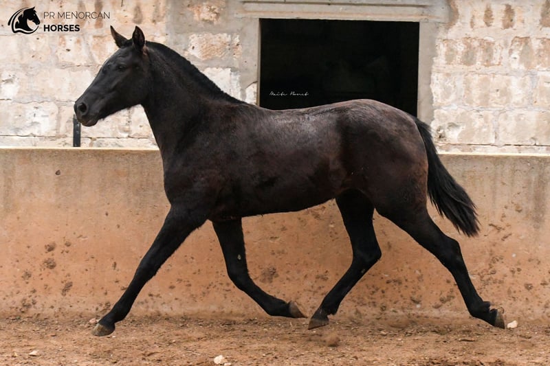 This beautiful Pura Raza Menorquina filly, born in May 2022, is looking for a new home. She is completely black, we estimate that she will be just under 160cm when she finishes growing. She is curious and playfull. She is used to people, she is always looking out for her older sister. The two live freely in the field along with other mares with their foals. Her father is descended from an ancient and well-known bloodline. She would be a good option as a leisure mare, but she also has potential for dressage, jumping, and as a trail horse and from 3 years old she could be assessed as a breeding mare. She is already prepared to travel, but if you prefer that she stay a few more months in Menorca, with other foals her age, that is also an option. Consult the different options with us. I can organize a veterinary examination, quarantine (if applicable) and transportation worldwide. Located in Menorca More information and videos by private message ;) Cheers!