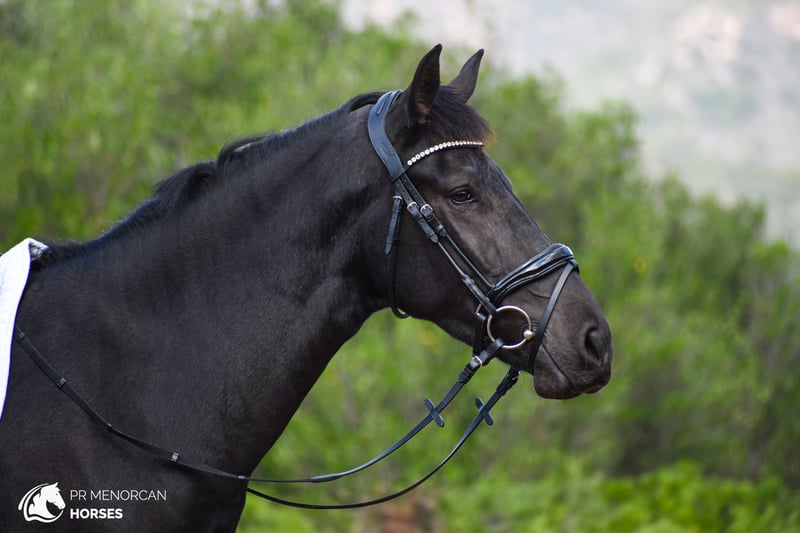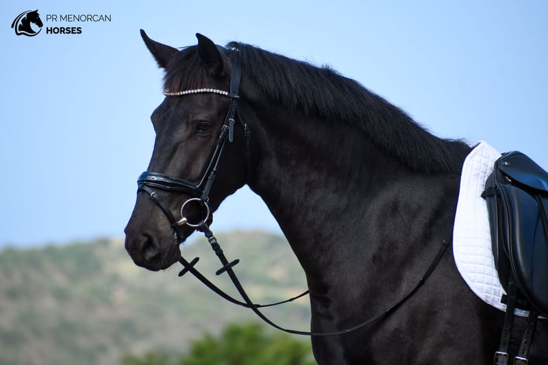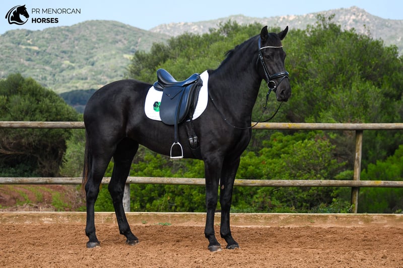 his sunning 2021 Purebred Menorcan Mare coul be your Perfect Dressage Project! This elegant black mare stands at 165 cm and may still grow a bit more until age six. Coming from a lineage with breed champions and award-winning horses for morphology, she is an excellent candidate as a broodmare (she is already approved) for those seeking to breed athletic, big horses. Her versatile nature and graceful movement make her an outstanding dressage prospect but could also excel in show jumping, eventing, driving, or as a trusted trail partner. With a gentle, initially shy disposition, she is noble-hearted and grows incredibly loyal and willing as she bonds with her trainer. This mare is dedicated and hardworking, responding well to new challenges. She’s already familiar with basic handling, lunging, long-rein work, and natural horsemanship, and is progressing in her dressage training with a foundational understanding of walk, trot, and canter, as well as her first outings beyond the arena. She can adapt well to stable life or living freely in a pasture with other fillies and mares. Fully up-to-date on deworming. You’re welcome to visit her in person, or we can arrange the entire process online. We also handle vet exams, documentation, and worldwide transport. Located in Menorca. DM for more information and videos Cheers!