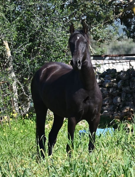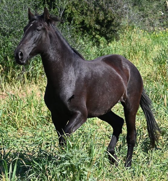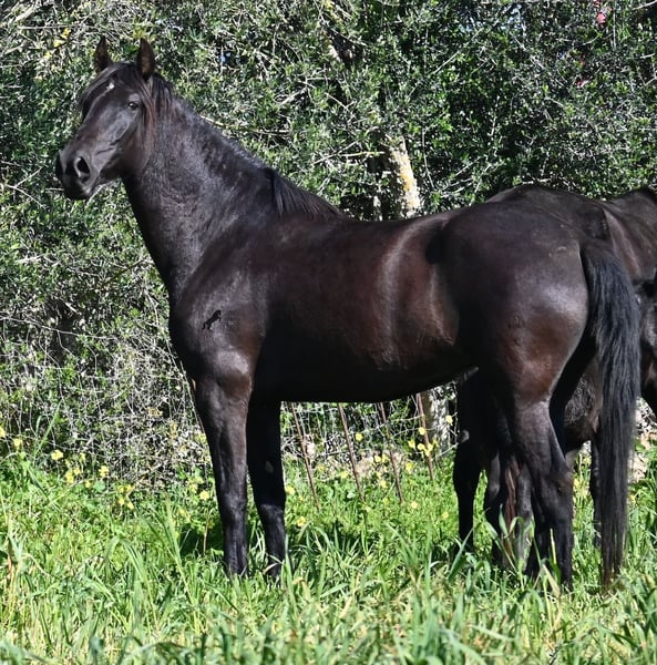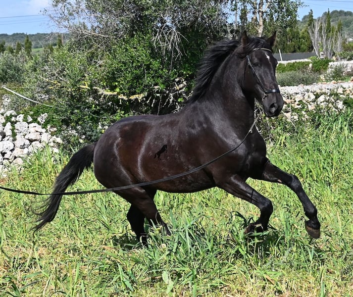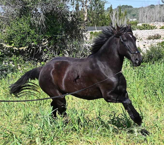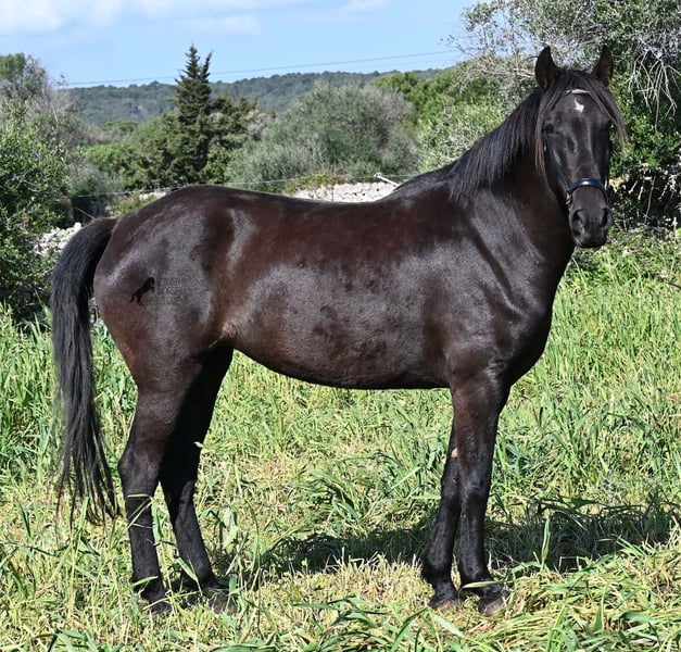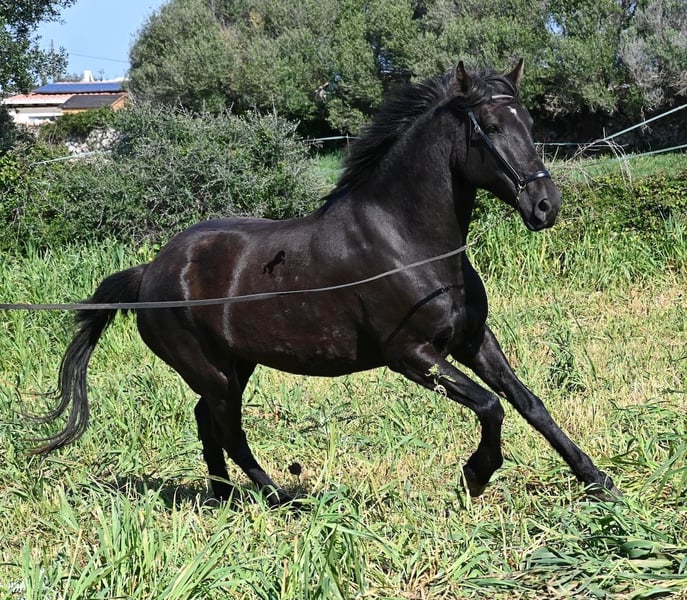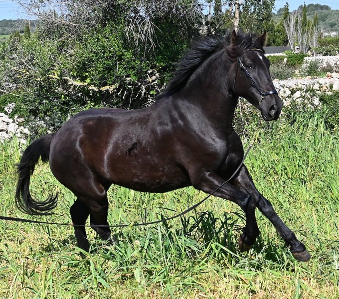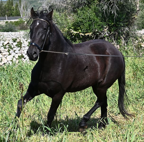 Diese 2021 geborene, reinrassige Menorquinstute, ist mit 167cm noch nicht ausgewachsen und jetzt schon eine große Rassevertreterin für eine Stute. Das schöne ist, dass durch ihre Adern ganz alte Linien des Menorquin fließen, um diese nicht zu verlieren und dennoch ist sie im sportlich-barock stehenden Typ, wie es heutzutage vielerorts gewünscht wird. Die Besitzer haben sie eingefahren und schon ein paar Mal auf sie draufgesetzt, aber richtig angeritten ist sie noch nicht- es besteht aber die Möglichkeit, sie vor Ort anzureiten! Im Jährlingsalter wurde sie auf der Zuchtschau vorgestellt und hat sehr gute Noten bekommen. Durch das Erlebnis kennt es sie auch longiert zu werden, an neuen Orten mit fremden Pferden zu sein und verladen klappt dadurch auch super. Die Idee war, dass sie eine Zuchtstute werden sollte, sie ist auch gekört, jedoch haben sich die Besitzer nun entschieden eine andere Nachzucht aufzuziehen und ihr einen Platz zu suchen, wo sie genau so liebevoll betreut wird. Die Besitzerin sitzt oft Stunden bei ihr auf der Koppel, es wird heftig geknuddelt und abgeknutscht, wobei sich selbstverständlich auch um das liebliche Wohl gekümmert wird, wie es bei Pferden sein soll. Sie geht barhuf, steht 24h draußen in Robusthaltung in Stutengesellschaft und ist dadurch sehr widerstandsfähig und bestens sozialisiert. Eine wirklich liebe Stute, mit toller Größe, einwandfreiem Charakter und bestimmt leicht einzureiten. Videos und Abstammung gerne auf Anfrage. Ihr Standort ist Menorca. Gerne organisiere ich vor Ort eine AKU,Transport oder auch ihre Reise, sollten Sie persönlich zum Anschauen kommen. Details dazu gerne auf meiner Seite oder im Gespräch. Saludos aus Spanien