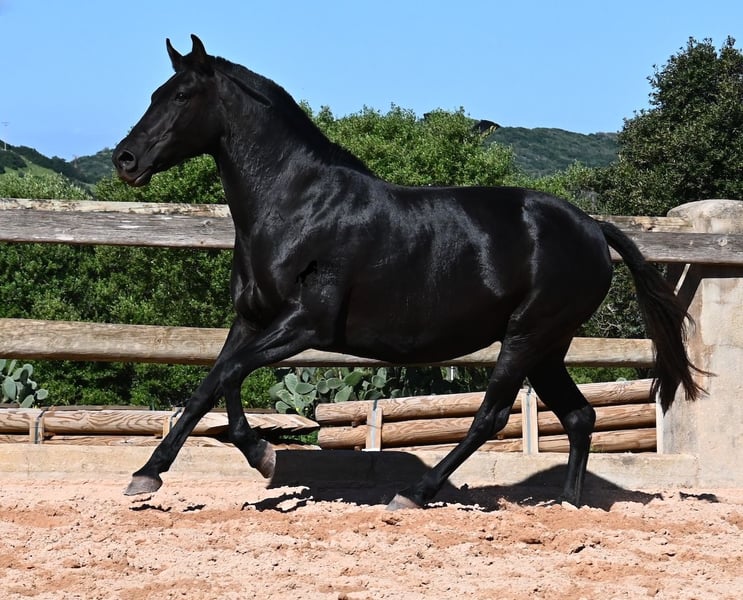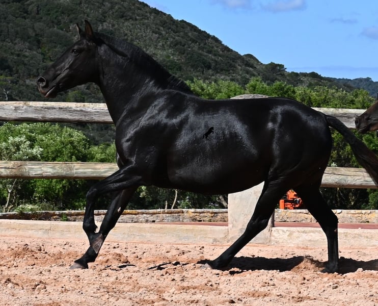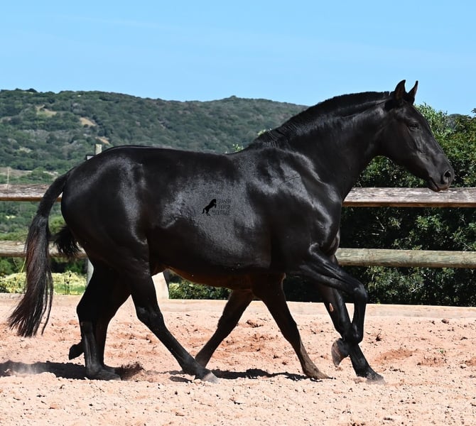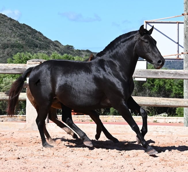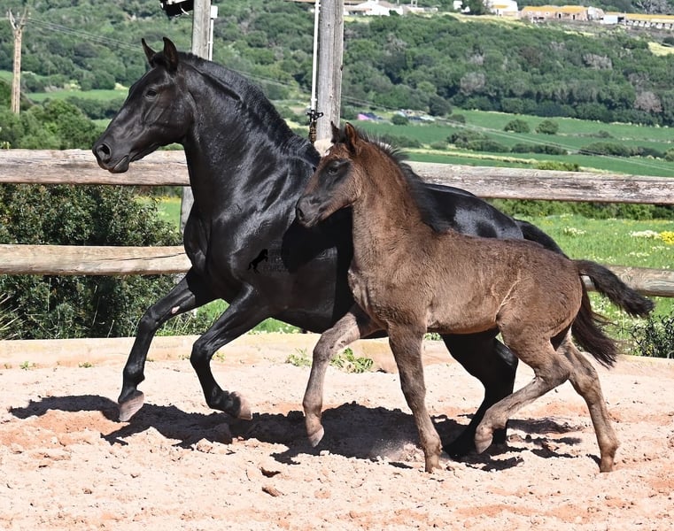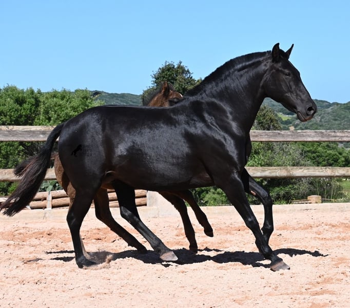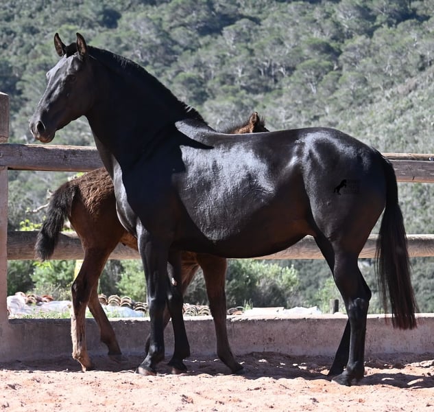 Esta yegua pura raza menorquina, nacida en 2018, vive en Menorca la clásica vida de yegua. Por tradición, solo se montan los sementales y las yeguas viven en muchas hectáreas de terreno, en manada, disfrutando de la vida; y si son buenas yeguas, como ella, también pueden ser madres. Así que NO está montada. Su magnífico potro de este año NO está a la venta, pero se quiere mostrar para que se pueda juzgar su calidad como yegua madre. La yegua mide 153 cm, no es muy grande, pero es hermosa, de tipo barroco y bien proporcionada. Su potro al pie es ya el segundo que tiene, por lo que aún no se puede estimar si sus potros serán mucho más grandes como animales adultos. Ella lleva en su genética líneas muy antiguas del menorquín, que se están perdiendo cada vez más, así que es bonito que contribuya a la conservación de estas líneas originales. Ha sido cubierta por un menorquín de más de 170 cm que tiene el estatus de Recomendado por sus logros en la exposición de cría y en torneos locales de Doma Menorquina. Sin duda, está creciendo un potro de alta calidad en su vientre, y por el precio de uno, en unos meses tendrás dos. La yegua puede ser transportada sin problemas mientras está cubierta. Por supuesto, a su edad, también puede ser montada. Actualmente se encuentra en Menorca. Videos y pedigree disponibles a petición. Con gusto organizo una revisión veterinaria, monta, transporte o su viaje, si desea venir personalmente a verla. Detalles disponibles en mi página o en conversación. Saludos desde España.