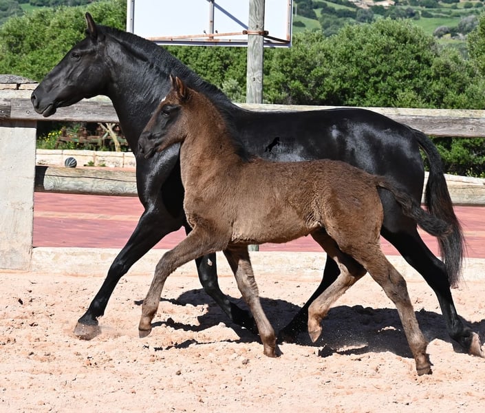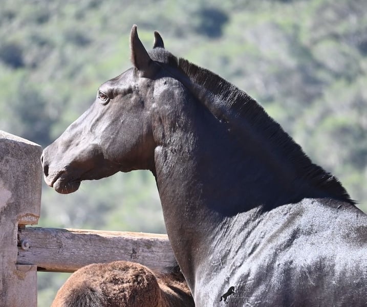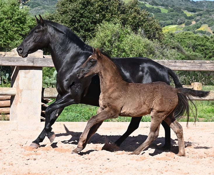 This 2018-born, purebred Menorquin mare lives the classic mare life on Menorca! According to tradition, only the stallions are ridden, and the mares live in herds on many hectares of land, enjoying life. If they are good mares, like her, they are also allowed to become mothers. She is therefore NOT ridden. Her magnificent foal from this year is NOT for sale but should still be shown so that her quality as a mother mare can be assessed. ;) The mare stands at 153 cm, which is not too tall, but she is beautifully baroque and well-built. Her foal at foot is now the second she has had, so it is still uncertain whether her foals will grow much larger as adults. She carries very old lines of the Menorquin that are increasingly disappearing, so it is wonderful that she contributes to the preservation of these original lines. She has been covered by a Menorquin stallion over 170 cm tall, who has Recomendado status for his performance at the breeding show and at local Doma Menorquina competitions. Without a doubt, a high-quality foal is growing in her belly, and for the price of one, you will have two in a few months. ;) The mare can also be transported without any issues while in foal! Of course, at her age, she can still be started under saddle. She is currently located in Menorca! Videos and pedigree available upon request. I would be happy to organize a veterinary check, training, transport, or your visit to see her in person. Details can be found on my page or discussed in conversation. Greetings from Spain!