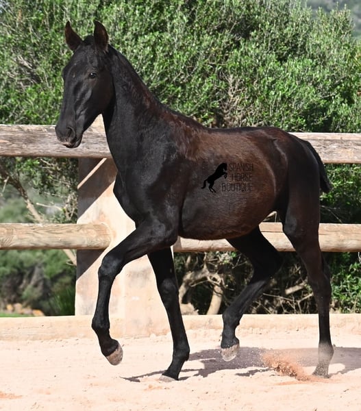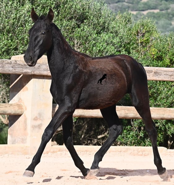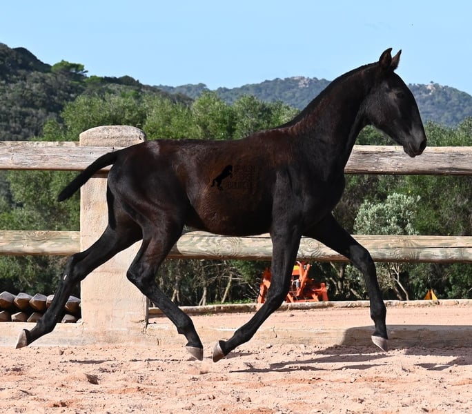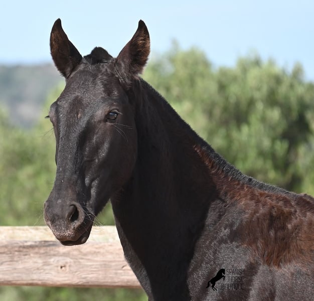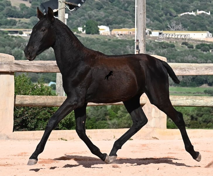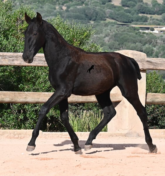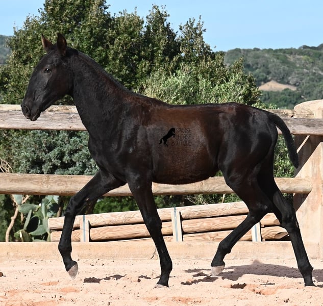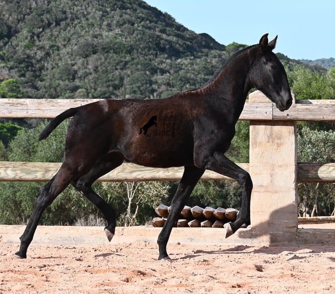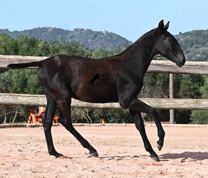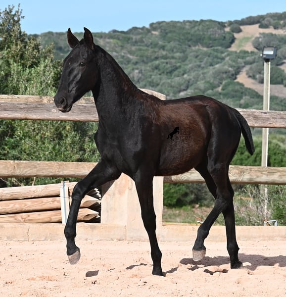 This foal, born in February 2025, is a purebred Menorquín mare with a very distinctive head that makes her stand out from the crowd. Her sire is an impressive 173 cm tall and is a recommended stallion for breeding due to his outstanding competition results. He has undoubtedly passed on this potential and stature to his daughter. Her long legs already indicate that she will grow into a tall lady, and she carries these legs with a lot of energy, impulsion, and elegance! Later, she will be attractive for many disciplines. She has an absolutely charming character. Very calm and open, she is likely to become a cuddly lady in the future. Her daily routine takes place in a pony kindergarten, where she is kept in robust conditions on rocky ground and in a harsh climate. Besides playing with her pony friends, she also regularly learns the basics of foal handling, and she is cared for very lovingly. Videos and pedigree available upon request. Her location is Menorca. I am happy to organize a foal health check, transport, or even her travel arrangements if you wish to visit her in person. Details can be discussed on my website or in a conversation. Greetings from Spain