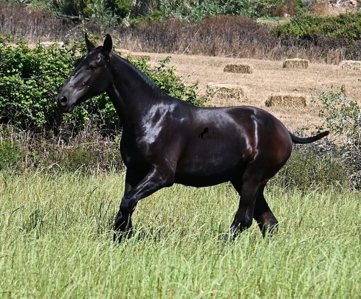 Este semental Menorquín de pura raza, nacido en primavera de 2024, es un representante de la raza muy cariñoso. Su suave mirada ya lo revela con esa expresión tan tierna :) Su padre ha producido varios campeones de raza, por lo que tiene un linaje exquisito y también por parte materna encontramos un campeón de raza en sus ancestros. Proviene de antiguas líneas del Menorquín, que son conocidas por producir caballos resistentes y versátiles. Esto se nota en él, ya que tiene un gran movimiento, es muy ágil y flexible, tiene un buen trasero y se desarrollará con un bonito tipo barroco. En grandes praderas, disfruta de la vida de potro con su amigo, lo que lo ha socializado muy bien. Gracias a las muchas rocas y suelos duros, tiene una excelente calidad de casco y ya es seguro en sus pasos. Es muy educado en el manejo, ya ha conocido el box y es muy amigable y afectuoso con las personas. Más adelante, será interesante tanto como caballo de monta como de tiro, ¡ya que los Menorquines son muy versátiles! Se espera que su altura final sea alrededor de 165 cm. Si deseas recogerlo más tarde, se puede organizar un lugar de crianza para él. Videos y pedigree disponibles a solicitud. Su ubicación es Menorca. Con gusto organizo en el lugar una revisión veterinaria para potros, transporte o también su viaje, en caso de que desee venir a verlo personalmente. Para más detalles, consulte mi página o hablemos. Saludos desde España.