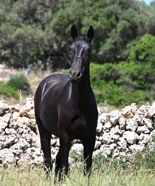Dieser im Frühjahr 2024 geborene, reinrassige Menorquinhengst, ist ein ganz herzlicher Rassevertreter. Das verrät schon sein sanftes Auge mit diesem knuffigen Blick :) Sein Papa hat mehrere Rassechampions hervorgebracht, also hat er eine exquisite Abstammung und auch mütterlicherseits finden wir einen Rassechampion in den Ahnen. Er entstammt alter Linien des Menorquin, die für ausdauernde und vielseitige Pferde stehen. Das merkt man auch an ihm, denn er hat eine tolle Bewegung, ist sehr geschmeidig und flexibel wendig, eine gute Hinterhand und wird noch schön barock. Auf großen Weiden, darf er mit seinem Freund das Jungpferdeleben genießen, wodurch er bestens sozialisiert ist. Dank der vielen Felsen und harten Böden, hat er eine tolle Hufqualität und ist jetzt schon trittsicher. Im Umgang ist er sehr artig, die Box hat er auch schon kennengelernt und er ist dem Menschen gegenüber sehr freundlich und zugewandt. Später wird er sowohl als Reitpferd, als auch als Fahrpferd interessant werden, denn vielfältig sind die Menorquin sehr! Sein zu erwartendes Endmaß liegt um die 165cm. Solltest du ihn erst später holen wollen, so kann gerne ein Aufzuchtsplatz für ihn organisiert werden. Videos und Abstammung gerne auf Anfrage. Sein Standort ist Menorca. Gerne organisiere ich vor Ort eine Fohlen-AKU,Transport oder auch ihre Reise, sollten Sie persönlich zum Anschauen kommen. Details dazu gerne auf meiner Seite oder im Gespräch. Saludos aus Spanien