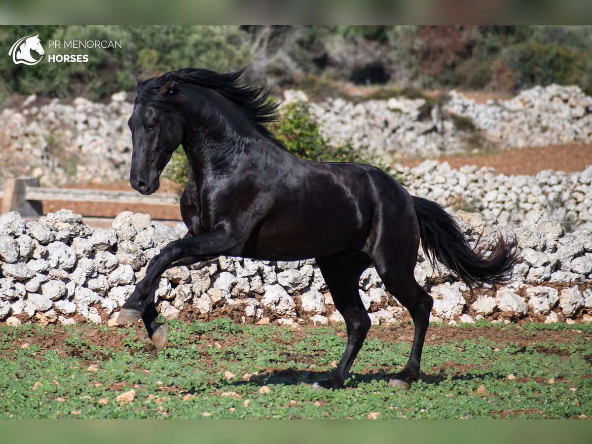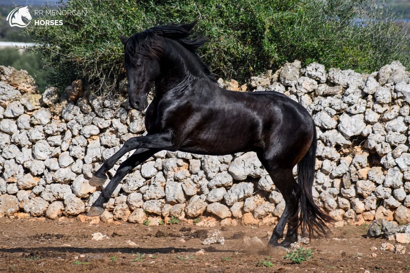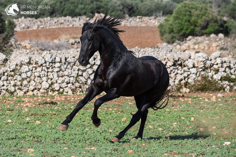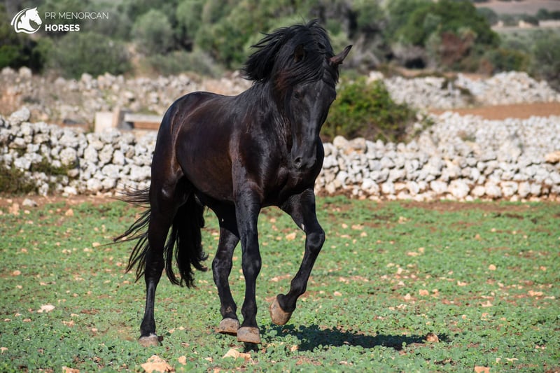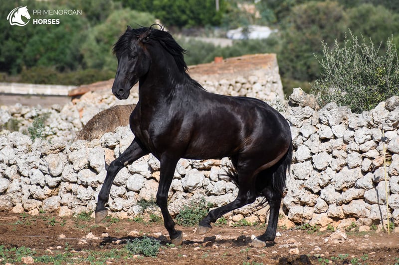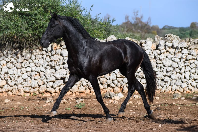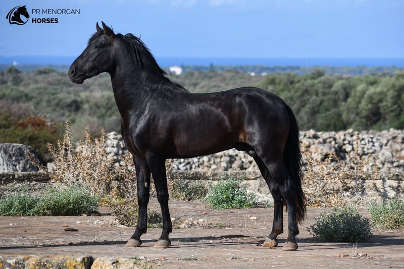 his beautiful and compact Purebred Menorcan stallion, born in 2021, could now be yours! With his black coat and just a small white marking on his right hind foot, he truly stands out. He currently stands at around 155 cm, and may still grow slightly until he reaches six years of age. The only reason his current owner is offering him for sale is due to his height, as they require a significantly taller horse. His pedigree includes renowned names such as Lester, Olivaret, and Dubin. While he could be assessed as a breeding stallion, he can also be gelded prior to transport if preferred. He has recently started under saddle with basic flatwork at the walk, trot, and canter, both in the arena and outdoors. He also works nicely in long reins, picks up his feet well, and loads easily into the trailer. This stallion is no spooky and energetic, making him a great option for trail riding, working equitation, or driving. He currently lives stabled with access to a paddock, alongside other stallions, and can also be turned out in a securely fenced paddock. Regularly dewormed Vet check, paperwork, and worldwide transport can be arranged Located in Menorca If you think he might be the right horse for you, don’t hesitate to get in touch. You're welcome to come visit him in person — or we can handle the entire process online. Contact us for more information and videos! Best regards!
