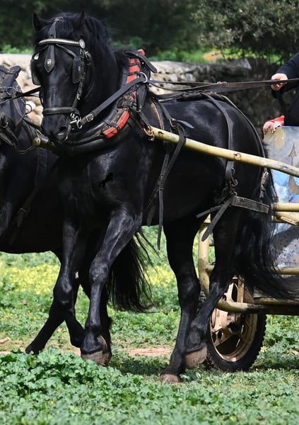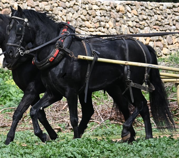 Dieser 2017 geborene, reinrassige Menorquinwallach, ist mit seinen 159cm Stockmaß, schön kompakt. Dieses kompakte Exterieur, lässt er besonders vor der Kutsche zur Geltung kommen, wo er sowohl einspännig, als auch mehrspännig gefahren wird! Er ist pechschwarz, ohne ein weißes Abzeichen und das macht ihn so richtig elegant als Fahrpferd. Sein Ohrenspiel zeigt, wie aufmerksam er ist und nicht nur auf die Zügelführung, sondern auch auf die Stimme des Fahrers, reagiert. Unterm Sattel ist er hauptsächlich im Gelände geritten, hat also nicht viel Ausbildung im Viereck was Lektionen betrifft, ist dafür aber ein ideales Freizeitpferd für alle, die gerne rausgehen oder selber noch ausbilden möchten, denn er wäre mit seinem Körperbau auch für die Working Equitation interessant. Im Umgang lässt er manchmal den Schelm durchblicken, ist aber absolut liebevoll dabei! Er geht problemlos barhuf, auch auf den felsigen Ausreitwegen Menorcas. Preis entsprechend der heutigen Kategorie des Menorquin, der vom Aussterben bedroht ist und eine Seltenheit! Sein Standort ist Menorca. Videos und Abstammung gerne auf Anfrage. Gerne organisiere ich vor Ort eine AKU, Beritt, Transport oder auch ihre Reise, sollten Sie persönlich zum Anschauen kommen. Details dazu gerne auf meiner Seite oder im Gespräch. Saludos aus Spanien
