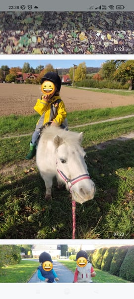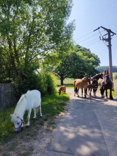 Polly is a small, typical pony, a theoretically white mare, approximately 17 years old, standing about 95 cm tall. I am only placing her in the best hands, where it simply fits. Ideally, I would like to rehome her together with Floh, as they get along very well. This is not an emergency sale! I am only offering her because my children have become too heavy for her, and she now mostly stands around unused. Polly is a classic pony that one must truly appreciate. Sometimes a bit sassy and moody, but she loves walks, and is comfortable lunging on a simple or double lunge line, knows long reins, a lunge line with a sleeve, and pulling a sleigh while being led. I originally wanted to start her under saddle, but despite planning to do so for the past four years, I haven't found the time and realistically don't think I will. However, I can very well imagine her being driven in a carriage. As a children's pony, she is fantastic! Easy to handle, groom, decorate, and ride while led. She is mostly relaxed (except around tractors). Please contact me for further details if interested.
