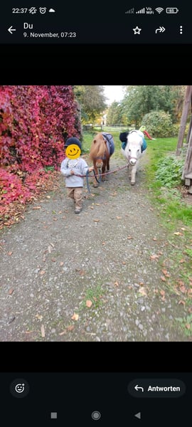 Polly ist eine kleine, typisch Pony, theoretisch weiße, ca. 17j. alte Ponystute mit einer Größe von ca. 95cm. Sie gebe ich nur in die besten Hände ab, da wo es einfach passt. Am liebsten würde ich sie nur zusammen mit Floh weggeben, da die beiden sich sehr gut verstehen.Es ist kein Notverkauf! Ich gebe sie nur ab, da meine Kinder zu schwer für sie geworden sind und sie jetzt doch überwiegend herumsteht. Polly ist ein typisches Pony, was man gerne haben muss. Manchmal etwas zickig und launisch, liebt aber Spaziergänge, geht an der einfachen longe sowie an der doppellonge, kennt langzügel, Schleppe und Schlitten ziehen, während sie dabei geführt wird. Eigentlich wollte ich sie einfahren, aber das wollte ich jetzt die ganzen 4 Jahre und habe es zeitlich nicht geschafft, sodass ich realistisch glaube dass ich es auch nicht mehr schaffen werde. Aber ich kann sie mir sehr gut vor der Kutsche vorstellen. Als Kinderpony ist sie super! Lässt sich führen, putzen bemalen und auch geführt reiten. Sie ist überwiegend entspannt (außer bei Trecker). Alles weitere bei Interesse.
