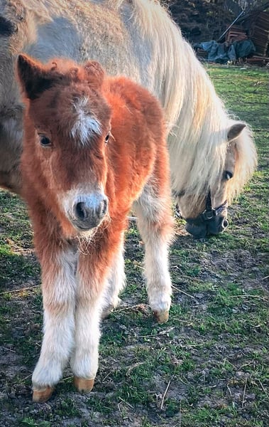 A beautiful, robust, self-bred mare from our family breeding program. Halter-trained, handleable by children, hoof trimming with a rasp possible, traffic-safe, familiar with dogs, cats, mice – all everyday sounds – never ill, no eczema, no laminitis. She is currently in our foal-rearing herd, living in a small mixed group in an open stable. Pandora has a calm, friendly temperament – she easily follows others and always behaves thoughtfully and very well-behaved. She has a strong, solid foundation and would certainly make a good broodmare. The second-to-last picture shows her mother, Many Minis Panama – a state premium mare. The last picture features her sire, Fleetwood Ley Piano – a South German premium stallion. More pictures and videos are available upon request or at: www.km-minishetlands.de https://www.facebook.com/kmstallions.de/