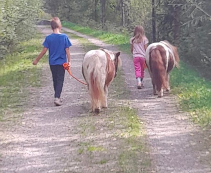 Sind beide sehr brav , kennen das geführte Ponyreiten, lassen sich von Kindern führen, putzen,Hufe geben ohne Probleme.... Beißen und schlagen nicht. Sind gesund ( kein Ekzem ,Hufrehe) und natürlich Zaunsicher. Vor kurzem wurden auch die Zähne gemacht, regelmäßig entwurmt und beim Schmied vorgestellt. Am letzten Bild ist der Vater - gekörter Mini Jasper Es werden beide günstig an Bestplaz abgegeben.