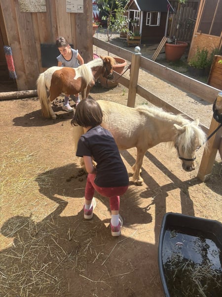 For sale is a charming Mini Shetland pony mare, born on May 12, 2025. She is a beautiful bay roan with a height of 80 cm and is perfect for leisure activities. This delightful pony is friendly, curious, and has a gentle character, making her an ideal companion for children and beginners. She loves being outdoors and enjoys playing and frolicking. The pony is well-socialized and has already gained some experience in interacting with people. She is healthy and fit, ready for new adventures and a loving family. If you are looking for a loyal friend or simply a pony to cuddle with, then this Mini Shetland pony is just right for you! Chrissy has 3 siblings who are very child-friendly. 2 are with the same family and are currently being trained to drive; they can perform tricks and are simply fun to be with. If you are interested or have any further questions, please feel free to contact us. We look forward to your message!