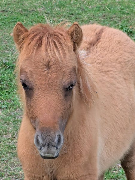 **Sales Advertisement: Mini Shetland Pony Mare** For sale is a charming Mini Shetland Pony mare, born in 2025. This little beauty stands at approximately 84 cm. She comes from a responsible breeding and is characterized by her friendly and curious nature. Ideal for children or as a loving companion for the whole family.