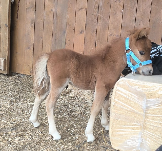 For sale: Miniature Shetland Pony Stallion This charming Miniature Shetland Pony stallion, born in 2025, is available for purchase. Standing at 24 inches (60 cm) at the withers, he is the perfect companion for both children and adults. His beautiful Palomino coat makes him a real eye-catcher. He comes from a responsible breeding program and is characterized by his friendly nature and curiosity. Well-socialized, he has already gained some initial handling experience with people. Whether as a loving family member, for breeding purposes, or as a loyal playmate – this Miniature Shetland Pony is sure to bring a lot of joy. If you are interested or have any further questions, please feel free to contact me. Visit us and see this wonderful pony for yourself!