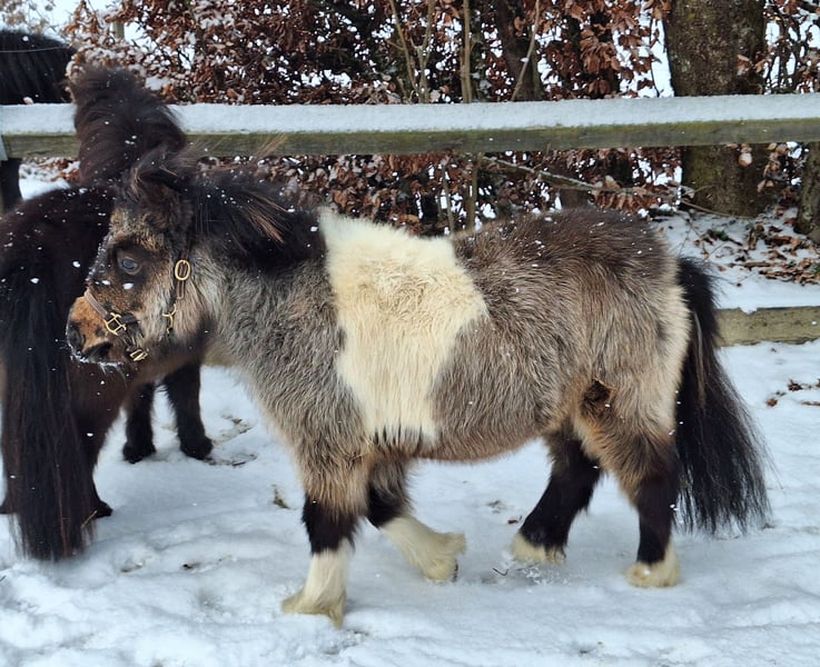 Zum Verkauf steht der bezaubernde Mini Shetland Pony Hengst Rudi, geboren im Mai 2024. Das niedliche Scheckmuster (Braunisabell-Schecke) macht ihn zu einem echten Blickfang. Ebenso zum Verkauf steht sein hübscher Halbbruder Romeo, geb. im April 2024, in der Farbe braun. Stockmaß Vater 82cm, Stockmaẞ der Mütter jeweils 87cm. Beide haben volle Abstammungspapiere. Sie sind bisher zusammen liebevoll in einer Familie mit Kindern aufgewachsen. Sie überzeugen beide durch ihr freundliches lustiges Wesen. Bei Interesse oder weiteren Fragen stehe ich Ihnen gerne zur Verfügung. Am liebsten persönlich oder per WhatsApp unter 0174/6062021