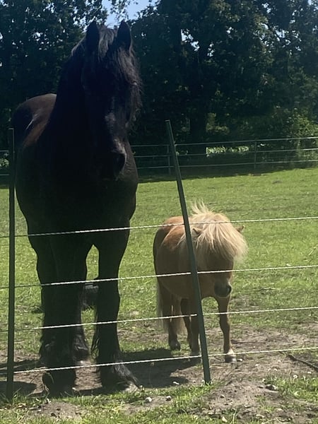 "Kalle" Kalimero from Radebachtal is an alert, curious, and yet relaxed little stallion who is now looking for a new 5-star home. At his age, he is playful and loves to romp around the pasture with his buddies (another Mini Shetland stallion and a Quarter yearling). However, he also enjoys some alone time and sometimes stands apart from the herd; he is not clingy. He is used to being in a herd with larger horses as well as other young stallions. In terms of character, he is a loving and cuddly little guy who has integrated well into the herd. His behavior in the herd is absolutely uncomplicated, and he is always friendly towards humans and easy to handle. He has grown up with peers of the same age, Mini Shetlands, and is accustomed to living in an open stable environment, 24/7 year-round. Currently, he is still on a large, rather sparse pasture 24/7 in the summer; in his new home, the grazing time should preferably be rationed or limited for health reasons, e.g., replaced by paddock housing with sufficient hay and/or dry haylage feeding. Due to his good lineage (more detailed information can be provided upon serious interest), I could also see him being presented at a breeding inspection. Otherwise, he will certainly be enthusiastic about work in front of the sulky and, of course, groundwork at the appropriate time, as he has an intelligent nature. Even though he is a small, uncomplicated Shetland pony, he is still a stallion that belongs in experienced and consistent hands. He should not be in the sole care of children. He currently shows no stallion behavior, but this can change quickly with the first contact with mares (even the scent of mares in heat from several hundred meters away can be detected by stallions). The new owner is, of course, free to have him gelded; the sooner, the better. He is NOT suitable for riding by small children!!! This is not an urgent sale!!! As I am very concerned about his future home, he will only be sold under the following conditions: - He will only be placed in a 24/7 year-round open stable environment; box housing would certainly harm his health due to his massive, thick, and dense coat. - He will only be placed in a herd that also includes other Mini Shetlands or at least Shetlands, as this is required from an animal welfare perspective. He needs to be able to play with buddies of his size and exchange social behaviors such as grooming. - He will NOT be sold to riding schools or horse dealers. - He will not be sold as a riding pony; he is not suitable for that and it would harm his health. - He will be sold with a buy-back option. - He will NOT be sold as a "lawnmower." He is regularly presented to the farrier, is regularly dewormed, and finds the horse trailer extremely exciting. I would wish for him a home enthusiastic about Mini Shetlands, e.g., lovers of this breed or truly and seriously ambitious experienced pony people. Serious inquiries can visit the little man, and as always, placement takes precedence over price. If interested, please leave your name and phone number, and I will call back as soon as possible!