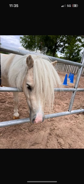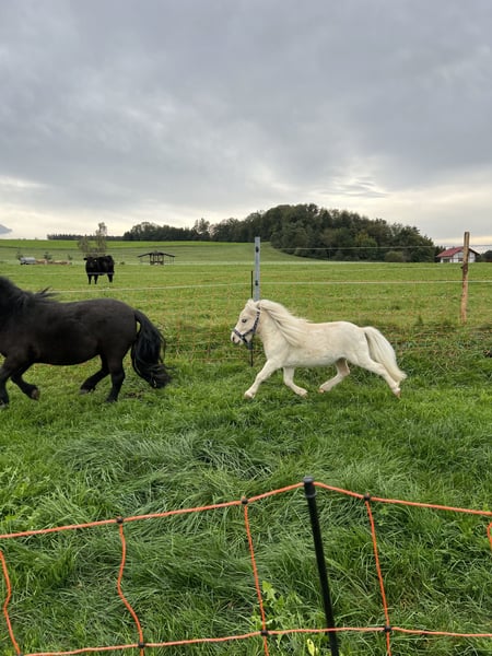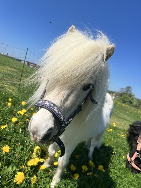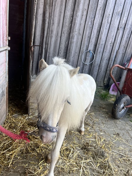 **Features:** - **Breed:** Mini Shetland Pony - **Gender:** Stallion - **Year of Birth:** 2017 - **Color:** Palomino pinto - **Height:** 75 cm He is driven, accustomed to rider weight, and also walks nicely alongside a bicycle or inline skates. 100% safe with fences, even without electricity. He has super nice movements and a great coat. Price is negotiable for a good home. Feel free to contact for further questions.