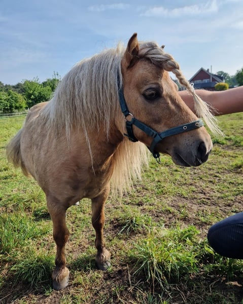 In der Decksaison 2026 steht unser Deutsch Partbred Mini Shetty Hengst Patch vom Herrenhof auch Fremdstuten zur Verfügung. Am 9. Februar 2018 wurde Patch in den Holstenhallen Neumünster zum Körungs- und Rassesieger gekürt – am 25.02.2023 wurde er beim Pferdestammbuch Weser- Ems anerkannt und in die Prämienklasse eingestuft. Ein echtes Ausnahmetalent auf vier Hufen! Patch ist nicht nur ein Hingucker durch seine besondere Farbe (Rotfalbe), sondern auch ein absoluter Charmeur. Super brav, treudoof und mit einem Blick zum Dahinschmelzen – er wickelt einfach jeden um den Finger. Deckbedingungen auf Anfrage. Er steht in 33442 Herzebrock-Clarholz.