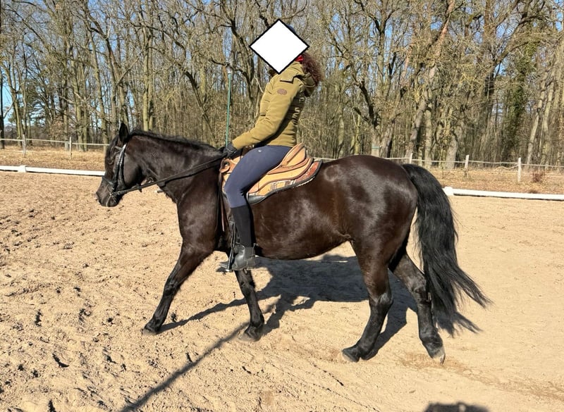 Leonards Lillifee Go - eine bildhübsche Missouri Fox Trotter Stute, geboren 2009, mit einem Stockmaß von etwa 148 cm und in der tollen Farbe Rappe. Sie ist kompakt und korrekt gebaut und gesund. Lediglich am rechten Sprunggelenk trägt sie eine alte, längst verheilte Wunde, die einen kleinen Schönheitsfehler darstellt und sie in keiner Weise beeinträchtigt. Lillifee lässt sich problemlos verladen, kennt Tierarzt und Hufschmied, ist regelmäßig geimpft und entwurmt und lebt aktuell im Offenstall. In der Herde ist sie sehr ranghoch. Sie besitzt einen ausgesprochen lieben, menschenbezogenen Charakter, ist aufgeschlossen, anhänglich, sanft im Umgang und sehr verschmust. Trotz ihrer Bravheit ist sie kein Pferd für absolute Anfänger, da sie aufgrund von Zeitmangel bisher nur unregelmäßig geritten wurde. Sie befindet sich auf einem guten Weg, zeigt sich lernwillig und kann mit kontinuierlicher, ruhiger Förderung weiter gefestigt werden. Im Umgang mit Kindern, Hunden und im Straßenverkehr ist sie souverän. Sie kennt Bodenarbeit und wird freizeitmäßig geritten. Im Gelände zeigt Lillifee sich motiviert und zuverlässig, besonders in Begleitung ist sie flott unterwegs. Auf dem Platz arbeitet sie weniger begeistert, zeigt jedoch schöne, taktreine Bewegungen in ihren vier Gangarten, die typisch für die Rasse sind und sehr angenehm zu sitzen. Dank ihrer guten Abstammung ist Lillifee auch für die Zucht interessant, hatte bislang aber noch kein Fohlen. Schweren Herzens wird sie aufgrund von Zeitmangel in liebevolle und fördernde Hände abgegeben. Sie ist ein treuer Partner für jemanden, der sich eine sanfte, menschenbezogene Stute mit Charakter, Ausstrahlung und Potenzial wünscht. Platz vor Preis.