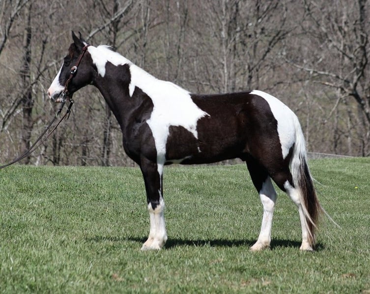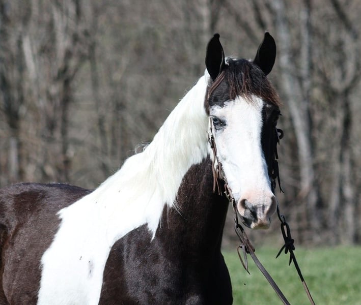 ONLINE AUCTION Place your bids at www.PlatinumEquineAuction.com Starting Bid $3500 Auction ends July 28th, 2024 Need a new saddle? Check out White Rock Saddles on our website or Facebook! Taco is an eye catching black/white tobiano, gelding that is standing 14.1hh and he is 10 yrs old. Taco has been on camping trips, picket line tied and hauled to several states. He will flatfoot walk on a loose rein or he can move on out if you ask. He has a smooth and natural 4-beat gait that anyone will enjoy riding on! He can gait on out around 10mph or walk on a loose rein as well. Taco has been shown at local fun shows in pleasure classes and seen it all from the bright lights to hearing those blairing loud speakers. Taco has seen it all and handles everything in stride! He has been exposed to all kinds of wildlife such as deer or turkey or other animals like cows or dogs and will go anywhere that he is asked too. He has been rode many miles in the mountains of Eastern Kentucky and encountered every obstacle possible on the trail. He will go up or down even the steepest slopes, across deep creeks, over downed trees, and over all types of rough terrain while still being sure footed. He has been rode in traffic, and is very traffic safe around cars, semi, log, and dump trucks. If you are looking for that special trail riding partner, then look no further!! Feel free to call Trevor Patrick 606-516-8069 with any questions. ONLINE AUCTION Place your bids at www.PlatinumEquineAuction.com Starting Bid $3500 Auction ends July 28th, 2024 Need a new saddle? Check out White Rock Saddles on our website or Facebook!