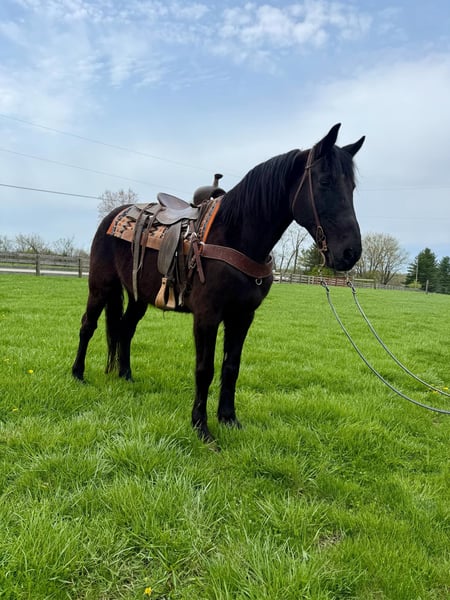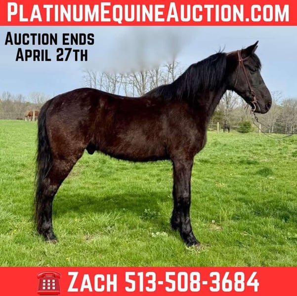 ONLINE AUCTION Place your bids at www.PlatinumEquineAuction.com Starting Bid $3500 Auction ends April 27th, 2025 Need a new saddle? Check out White Rock Saddles on our website or Facebook! Shadow is a handsome jet black grade Missouri Foxtrotter gelding that is 13 years old and stands approximately 15.1 hands tall. This is an extremely well natured gelding that is truly gentle and aims to please 100% of the time. Shadow will walk for miles on a loose rein, calm and content, he has a stylish smooth gait that is very comfortable and a very easy to sit cantor. Shadow is not a hot or pushy horse, he stays relaxed and responds to his riders cues. He goes where you point him on the trail and never bulks, refuses or second guesses his rider. Shadow is desensitized, trusting and people loving. He hauls perfectly, stands for bathing and grooming, he loads and unloads with ease and is truly just over all easy to be around. Located in Moscow, OH. Contact Brandenburg Stables Zach 513-508-3684 with any questions or to make a buy it now offer. ONLINE AUCTION Place your bids at www.PlatinumEquineAuction.com Starting Bid $3500 Auction ends April 27th, 2025 Need a new saddle? Check out White Rock Saddles on our website or Facebook!