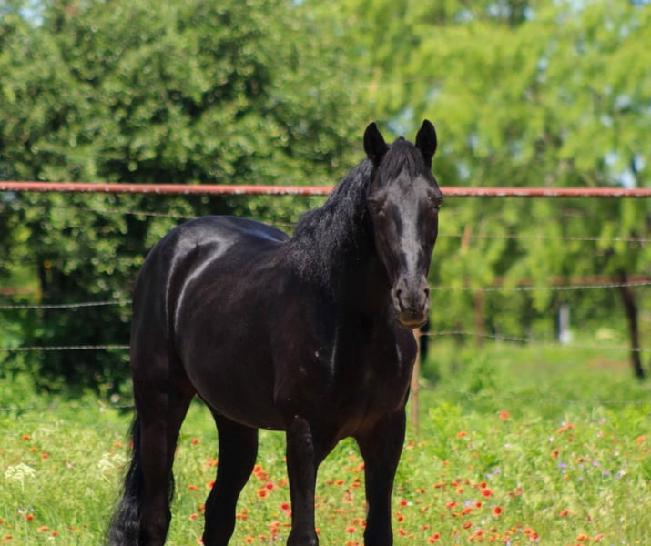 ONLINE-AUKTION Bieten Sie jetzt auf www.PlatinumEquineAuction.com Startgebot: 3.500 USD Auktion endet am 1. Juni 2025 Benötigen Sie ein neues Sattel? Schauen Sie bei White Rock Saddles auf unserer Webseite oder Facebook vorbei! Lernen Sie Da Vinci kennen – das Inbegriff von Ruhe, Gelassenheit und Selbstsicherheit! Dieser großartige, achtjährige, gaited schwarze Wallach ist etwa 1,50 m groß (15 hh) und lebt seinem Namen alle Ehre: Er ist so hübsch wie ein Bild und glänzt wie eine frisch polierte Münze. Da Vinci ist der liebenswerteste Kerl, den Sie je getroffen haben, und er liebt es, die Trails zu erkunden! Ob Sie es ruhig angehen lassen und ihn seine Rittigkeit zeigen lassen möchten oder gemütlich einen malerischen Weg entlang spazieren – er ist stets bereit. Er ist so geschmeidig wie Tennessee Whiskey. Dieser abenteuerlustige Hengst meistert jeden Trail oder Hügel, den Sie ihm präsentieren, und scheut sich nicht davor, Bäche zu überqueren oder im Wasser zu planschen, um sich abzukühlen. Sogar bei den berühmten Fort Worth Stockyards hat er schon seine Show abgezogen und mit seinem langen, wallenden Schweif alle Blicke auf sich gezogen. Jeder, der ihn sieht, kann nicht anders, als zu lächeln! Was ihn noch auszeichnet: Er ist sehr umgänglich und kommt mit jedem klar. Ganz gleich, wer auf ihm reitet, er zaubert jedem ein Lächeln ins Gesicht! Wenn er mal eine Weile abgestellt wird, ist er beim nächsten Reiten genauso zuverlässig wie zuvor. Dieser elegante Kerl sorgt garantiert für Aufsehen, wo immer Sie auch unterwegs sind! Mit einem Herz so groß wie Texas ist Da Vinci ein wahrer Gentleman – vom Boden bis zum Rücken gibt er immer 100 %. Ich bin mir sicher, dass seine neuen Besitzer sich genauso in ihn verlieben werden wie wir und jede Minute mit diesem wundervollen Pferd genießen. Kommen Sie vorbei und lernen Sie Da Vinci persönlich kennen! Wenn Sie nicht persönlich vorbeikommen können, bieten wir auch FaceTime-Videos an. Für den Transport brauchen Sie sich keine Sorgen zu machen – wir haben eine Liste zuverlässiger Transportunternehmen, die ihn sicher bis zu Ihnen nach Hause bringen, weltweit, inklusive Alaska, Mexiko, Hawaii und Kanada, aus unserem Standort in Stephenville, TX. Kontaktieren Sie Michelle von M$ Performance Horses unter 661-817-9120 bei Fragen.