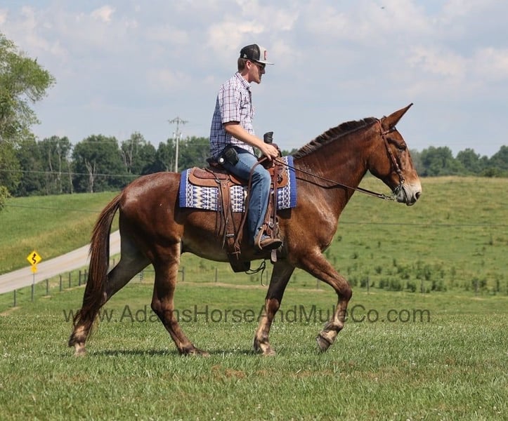 Go to visit our website for more pics and a video. AHAMC has been in the horse business and sold horses over the internet since 2005. We have a long track record of success with hundreds of happy customers. We work hard to match riders with the correct horses and specialize in beginner safe, family friendly horses that have been used and checked out by our family! Joe Burro is the type of mule that you often hear about but never see… until NOW!!! Joe is the most naturally gaited mule that you will find! He gaits like a horse and don’t tell him because he thinks he is one! Joe has no ear shyness or feet issues! He is a John (gelding) standing around 15.2hh and he is 7 years old. Joe has miles and miles of safe travels under his girth and with his experience and knowledge so he’s ready to take lesser experienced riders many more miles! Joe has done it all from camping trips in multiple states to local trails to fun shows. He will flatfoot walk on a loose rein or he can move on out if you ask. He has a smooth and natural gait that anyone will enjoy riding on and he can move out to around 11mph. Joe has been exposed to all kinds of wildlife such as deer or turkey or other animals like cows or dogs and will go anywhere that he is asked too. He has been ridden many miles in the mountains of Eastern Kentucky and encountered every obstacle possible on the trail. He has been ridden in traffic, and is very traffic safe around cars, semi, log, and dump trucks. If you are looking for that safe trail mule and want that 10/10 natural gait… Joe Burro is a touchdown! Feel free to call Eric 606-308-2461 with any questions.