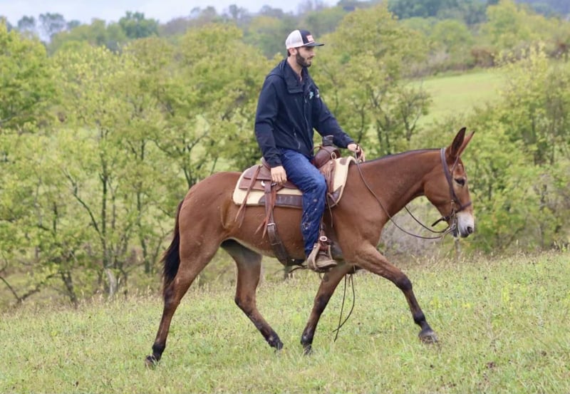ONLINE AUCTION Place your bids at www.PlatinumEquineAuction.com Starting Bid $3500 Auction ends October 26th, 2025 Need a new saddle? Check out White Rock Saddles on our website or Facebook Hope is a 14.3 hand, 10 year old Molly mule. She is the mule you want to be riding when it comes time to gather cows, trail ride, or have a little fun in the area. She has 3 smooth gaits. Walk, jog, and lope. She has a slow jog on you can do a big ranch trot across the pasture if you want. She rides level headed and soft in the bridle. She rides one handed nicely. She is as sure footed as they come. It doesn’t matter how technical and rough the terrain is, she is going to get you through it safely. Hope will quietly and confidently walk into a set of cows whether it’s out in the pasture or in a catch pen. She has been roped off of. She is a trail riding machine and will take you anywhere you want to go. She is ready for fall trail riding or heading into hunting camp. She ties well either in the barn or on the high line. She is good with a group or rides out alone. Stands for clipping and the farrier. She is a friendly mule. She is the type of mule we are very proud to offer and know she will make someone an exceptional partner! For more information, please call/text Sammi with Waugh Livestock at 704-798-5497 Located in Brooksville, KY. ONLINE AUCTION Place your bids at www.PlatinumEquineAuction.com Starting Bid $3500 Auction ends October 26th, 2025 Need a new saddle? Check out White Rock Saddles on our website or Facebook