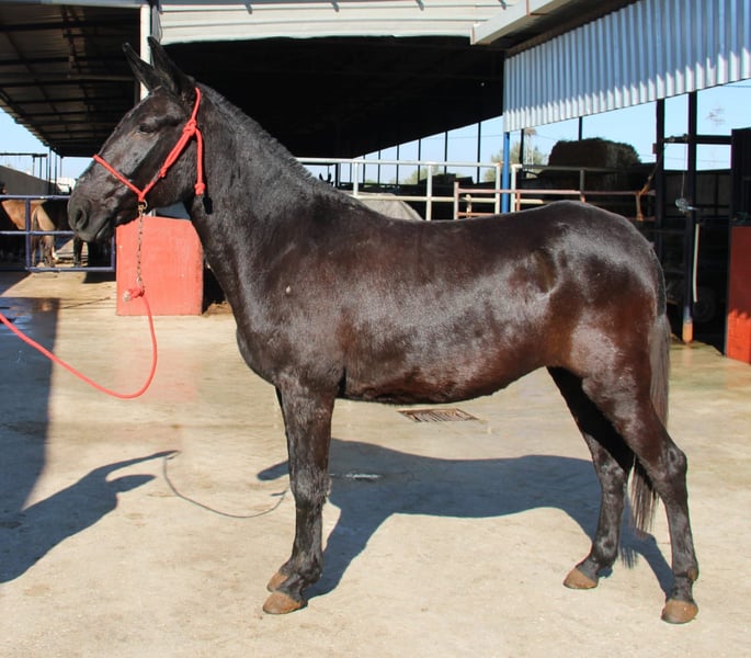 Al onze edelmulis zijn bereden, verkeersveilig, niet schrikachtig en regelmatig mee geweest naar romerías en ferias (Spaanse festivals), dus ze zijn gewend aan drukte en lawaai. De lieve hier laat ook de ruiter toe, zodat een ontspannen buitenrit geen probleem is. Qua karakter is ze een heel lief muisje dat graag verzorgd wordt en het heerlijk vindt om gekriebeld te worden. Op verzoek kan ze bij ons blijven voor verdere opleiding. Het transport wordt internationaal geregeld.