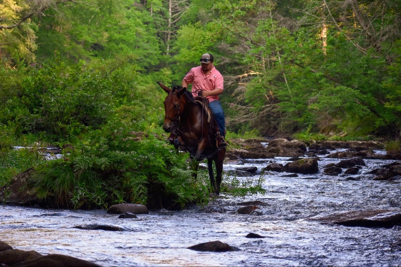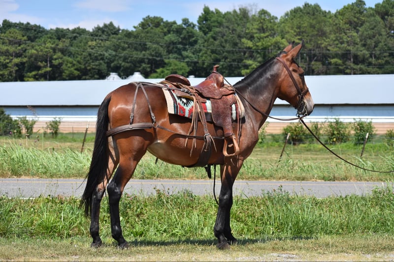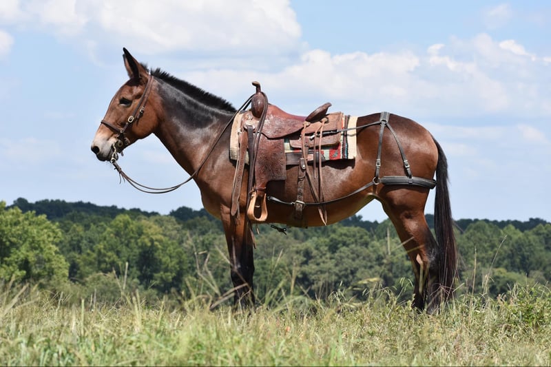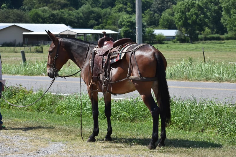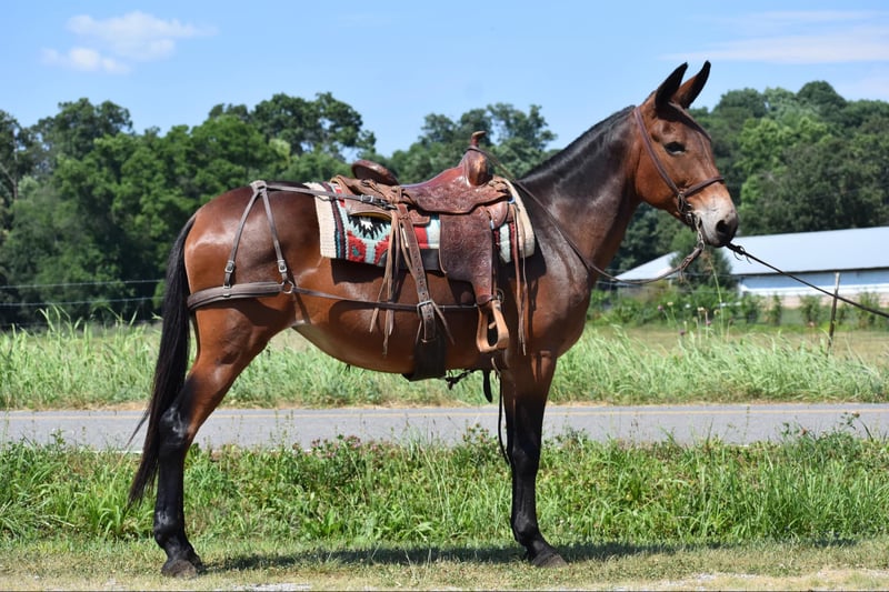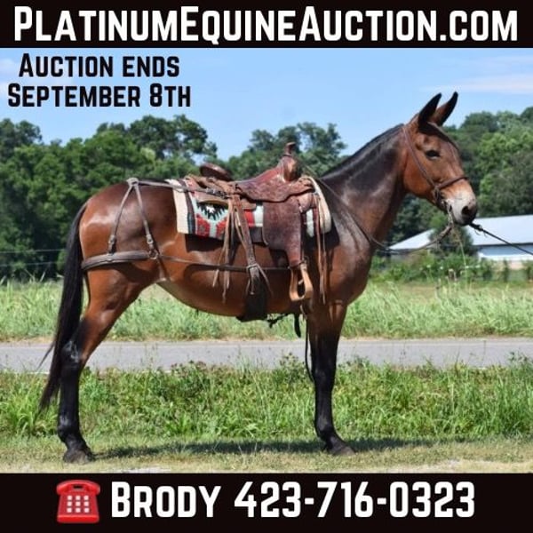 ONLINE AUCTION Place your bids at www.PlatinumEquineAuction.com Starting Bid $3500 Auction ends September 8th, 2024 Need a new saddle? Check out White Rock Saddles on our website or Facebook! Allie is a 9 yr old molly mule that is one of a kind, she stands right at 15.2 hands tall and is gentle as they come. In her video when we saddle her out in the field and get on her, that is the first time she had been out of the stall in 3 weeks. Allie has been on wagon trains, over night camping trips, hunting trips and even the county fairs!!!! She is so enjoyable to be around, she will greet you every morning in the barn with a big bray until you come give her some lovings and loves attention for anyone young or old!! Allie will go anywhere you point her head and is awesome on the trail, super quiet, and gentle!! Allie stands to be caught, groomed, bathed, saddled, mounted, clipped, and for the farrier!! She has a very nice walk, trot, and canter and not to mention a great stop!! She sells a 100% sound!!! Located in Cleveland, TN. Contact Brody Price 423-716-0323. ONLINE AUCTION Place your bids at www.PlatinumEquineAuction.com Starting Bid $3500 Auction ends September 8th, 2024 Need a new saddle? Check out White Rock Saddles on our website or Facebook!