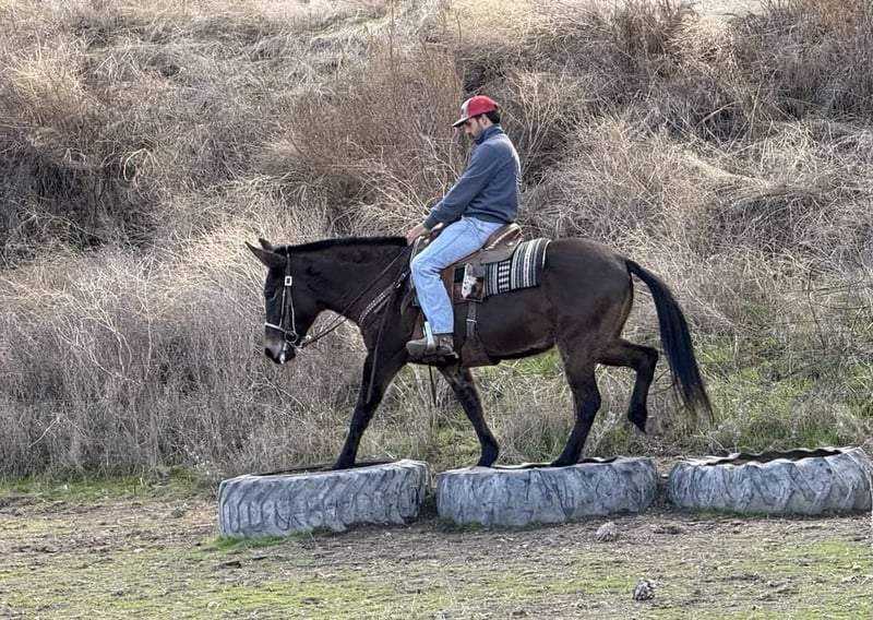 ONLINE AUCTION Place your bids at www.PlatinumEquineAuction.com Starting Bid $3500 Auction ends January 12th, 2024 Need a new saddle? Check out White Rock Saddles on our website or Facebook! Meet Apple Your New Favorite Mule! I just have to tell you about this amazing Grulla Molly mule named Apple! If you’re on the hunt for a trailblazing obstacle connoisseur, then look no further. Seriously, this sweet girl is the definition of gentle and has a heart that’ll steal yours in no time. Standing at 14.2 hands and with a solid 10 years of experience, she’s proven herself time and again on the ranch. Whether it’s gathering cattle, branding, or tackling all sorts of tasks, she does it all with such grace! Apple has traveled countless miles with her riders, and let me tell you, her temperament is just outstanding. She breezes through obstacles like tarps and bridges, and she’s even been ridden bareback through Christmas lights! How cool is that? Her calm demeanor shines in every situation, and she adapts effortlessly to side saddle or bareback riding no trail is too steep or windy for this sure-footed companion! She’s incredible her ability to cross water, walk over fallen trees, and forge through thick brush with ease Talk about reliable! In the arena, Apple struts her stuff with an effortless walk, trot, and lope, showing off her cool nature and playful spirit. Plus, she’s got a nice stop that makes riding a total joy! Oh, and did I mention how easy she is to catch, groom, and bathe? She’s good for the farrier too, and she doesn’t even need shoes! Her low-maintenance personality is a huge plus for anyone looking to add her to their family. Loading into trailers? A total breeze! Apple hauls like a champ and rides excellently every time. It’s honestly rare to find a mule as extraordinary as Apple. She’s a one-of-a-kind gem with a unique combo of traits that make her truly special! If you want more info, reach out to Longhorn Ranch in Paicines, CA. You can contact Dina at 831-537-1915. Trust me, you don’t want to miss out on this sweet girl! ONLINE AUCTION Place your bids at www.PlatinumEquineAuction.com Starting Bid $3500 Auction ends January 12th, 2024 Need a new saddle? Check out White Rock Saddles on our website or Facebook!