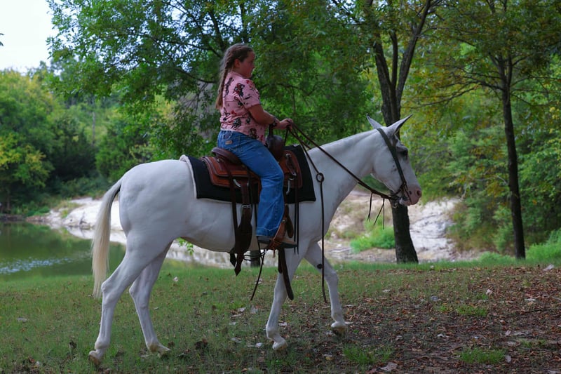 ♦️ 𝐭𝐡𝐞 𝐒𝐞𝐩𝐭𝐞𝐦𝐛𝐞𝐫 𝑺𝒆𝒍𝒆𝒄𝒕 ♦️ Happening now thru MONDAY | SEPTEMBER 8th - Available EXCLUSIVELY on HorseBid's website! For more details and to register visit: www.Horsebid.com CONSIGNOR CONTACT: MM Ranch 469-595-6289 LOCATION: Forney, TX BREED: Mule REGISTERED: No REGISTERED NAME: Marsha COLOR: Paint HEIGHT: 13.2 AGE: 15 GENDER: Molly Mule ✨💖✨Marshmallow aka Marsha✨💖✨ ✨The Ultimate Ranching All Around Family/Kid Molly Mule✨ 🧁🧁15 yo - standing at the perfect fun size of 13.2 hands tall - adorable paint mule🧁🧁 🏆🏆Marsha is the ultimate BOMBPROOF mule. SHE IS SAFE, SOUND, and BROKE. There is nothing you can not do on this mule. She acts like a horse, she is not your typical mule. Even if you are not a mule person you will love this mule. She rides the very best, works to a wagon both single and double, has pulled at plow in the garden, has been roped off of and used to work cattle, has carried a flag in parades and grand entries at rodeos, and is a pro pack mule. She has been on thousands of hunting trips. She has had a gun shot off her both on and around her on hunting trips. She has packed deer and elk out of the mountains. She will cross water, cross bridges, has been rode in every kind of terrain, she is sure footed, not at all tender footed, you can pop a bull whip standing up on her, can slide off behind her, crawl in under her, can open and close gates on her. She is a very pretty traveling mule, has a lovely gait and way of traveling, YOU DO NOT HAVE TO PLOW REIN HER, you can ride and turn her around with just a string around her neck, backs up great, has a great stop, light in the mouth, great short lope, you don’t have to wear spurs to get her to go, she can be rode bareback with just a halter, can catch her anywhere. She will meet you at the gate. Loves attention. Been used on thousands of trail rides and hunting trips all over the US. If you can sit on her you can ride her no matter your riding level or age. I MEAN ANYONE CAN RIDE HER and ABSOLUTELY DO ANYTHING THEY WANT ON HER. She would be perfect for beginners or kids. You can ride her once a month a once a year and she is the same. She does not need a tune up or need to be warmed up. You can just get on her and go. Stands perfect to be saddled and mounted. She will let you use a mounting block, fence, or bucket to get on and off. She will stand perfectly still and let you clip her ears and bridle path. She is not ear shy or head shy. She will let you pick up all her feet, will stand tied still all day long without pawing or moving around, she will stand ground tied when out hunting, she stakes out great hobbled or on a line when over night camping, loads and hauls great. SHE DOES NOT HAVE ANY BAD HABITS OR QUIRKS. Does not buck, will not run off, will not kick, not buddy sour or barn sour, she will ride alone or in a group, loads and hauls great. She is not scarred of anything, will not spook at on the trail, she is use to hunting dogs making lots of noise and running up behind her. SHE IS A BEEN THERE DONE THAT ALL AROUND EXCELLENT MULE. She has a sweet willing to please personality and will do whatever is ask of her. You can look a long time and will not come close to finding another one like her.🏆🏆 🌎 Shipping available anywhere.