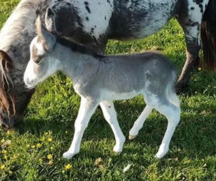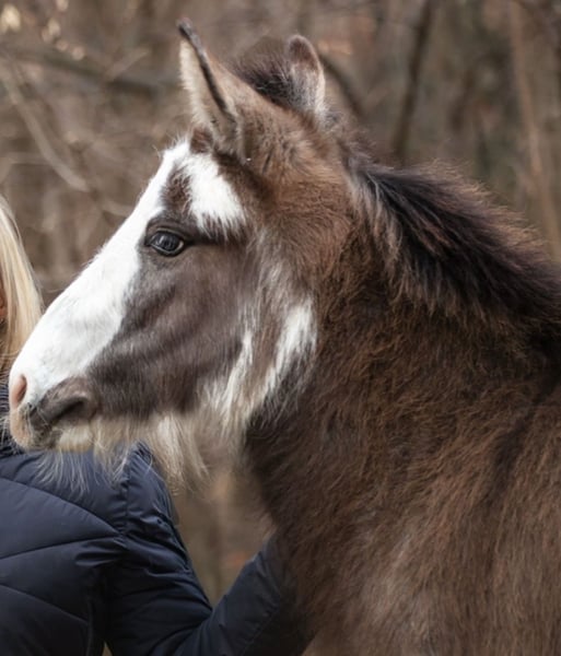 Elsa is something very special: a miniature mule✨ She has a super sweet character, loves to cuddle, and enjoys snuggling a lot. She is very playful and loves free work. She also enjoys going for walks. Elsa lives with us in a mixed herd and is very compatible.