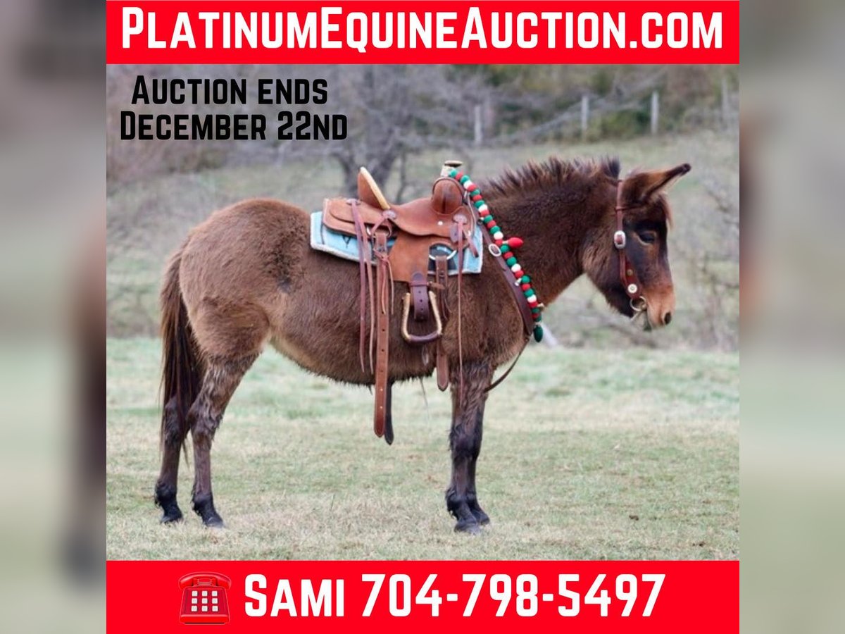 ONLINE AUCTION Place your bids at www.PlatinumEquineAuction.com Starting Bid $3500 Auction ends December 22nd, 2024 Need a new saddle? Check out White Rock Saddles on our website or Facebook! Josie is a 7year old, 40”, bay dun Molly mule. She is an extremely safe, quiet, and gentle pony mule. She is suitable for different ages and levels of kids and your kid can grow and improve either her without outgrowing her abilities quickly. Our toddlers do leadline with her and are riding her independently in a controlled environment. She listens well to their cues and is forgiving of mistakes. Bigger and more experienced kids can have A LOT of fun with her! She will walk, trot, and canter. Josie will back nicely and even can be ridden one handed. Josie rides out I independently or with a group on trail rides. If your kiddo isn’t quite ready to trail ride by themselves, you can pony her with a big horse down the trails. She has been ridden out to check cows and doesn’t get scared of them. Kids have even used her at the stockyards to push cattle down the alley ways. you can throw a rope off of her as well. If you can do it with a big mule, you can do it with Josie too! On the ground, she has excellent ground manners. She is gentle for the kids to lead by themselves. She will stand for hours to be brushed and messed with. You can pickup all 4 feet with ease. She loads and unloads and is careful for the littles to learn to do it with her. The mold was broken with Josie, they very rarely come like her! She travels well and we have had zero issues with her. For more information call or text Sammi Waugh 704-798-5497 Located in Brooksville, KY. ONLINE AUCTION Place your bids at www.PlatinumEquineAuction.com Starting Bid $3500 Auction ends December 22nd, 2024 Need a new saddle? Check out White Rock Saddles on our website or Facebook!