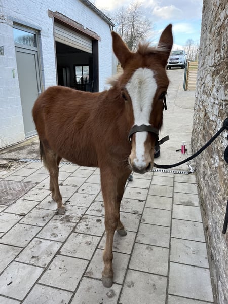 Bonjour, Je vends, à contre cœur, mon mulet prenant 4 ans en février 2026. En août 2021 j'ai acheté ma jument PRE. Celle-ci était en Belgique depuis deux mois seulement. J'ai appris, en février, quelques jours avant la naissance, qu'elle était pleine. Lorsque Pablo est né nous avons constaté qu'il s'agissait d'un mulet. Nous avons tout de suite accroché avec lui, il a un caractère particulier et bien à lui, très attachant ! Nous avons alors voulu le garder. Cependant, la vie nous oblige maintenant à voir les choses autrement, nous avons eu deux enfants très rapprochés et n'avons malheureusement plus assez de temps pour lui... Il vit au pré toute l'année avec sa maman (ils ont été séparés 6 mois pour le sevrage lorsqu'il avait 6 mois). Pablo est extrement gentil mais pas debourré. Il est très proche de l'homme et adore être brossé. L'important pour nous est qu'il parte dans une bonne famille.
