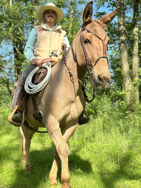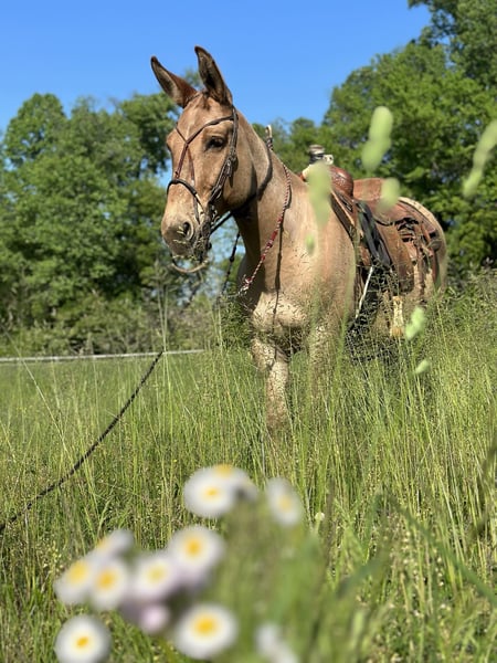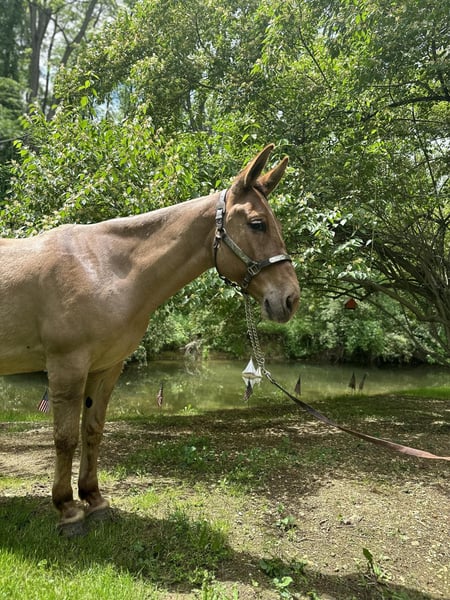 ONLINE AUCTION Place your bids at www.PlatinumEquineAuction.com Starting Bid $3500 Auction ends June 9th, 2024 Need a new saddle? Check out White Rock Saddles on our website or Facebook! Homer is a 9-year-old buckskin/dun john mule with a loving disposition. He stands 14.1 on the stick. We have known him for three years and owned him the last two. Homer is being offered for sale by no fault of his own. This mule has experiences of every kind. He has traveled from Texas to Arkansas to Pennsylvania. He has been extensively trail-ridden through all kinds of terrain and confidently navigates through thick woods and deep waters. He will ride in company or by himself and easily competes in trail competitions. Homer moves off your leg, side passes, neck reins, and is soft to the bridle. Homer was taught to lay down to mount and dismount, but will also stand to get on and off. Point his nose, and he will do just as you want. With his “get to work” attitude Homer works cattle, opens gates, plows fields, pulls carriages, ponies race horses, and flags babies. He also gives beginner and intermediate riding lessons. Reach out for more information about his work. Homer is a consistent ride and the same ride every time. He’s big ears and bray will be missed around the farm. Homer is one of a kind. Located in Cochranville, PA. Contact Chris Tejero 484-326-4618 with any questions. ONLINE AUCTION Place your bids at www.PlatinumEquineAuction.com Starting Bid $3500 Auction ends June 9th, 2024 Need a new saddle? Check out White Rock Saddles on our website or Facebook!